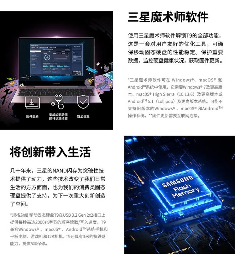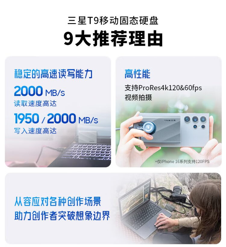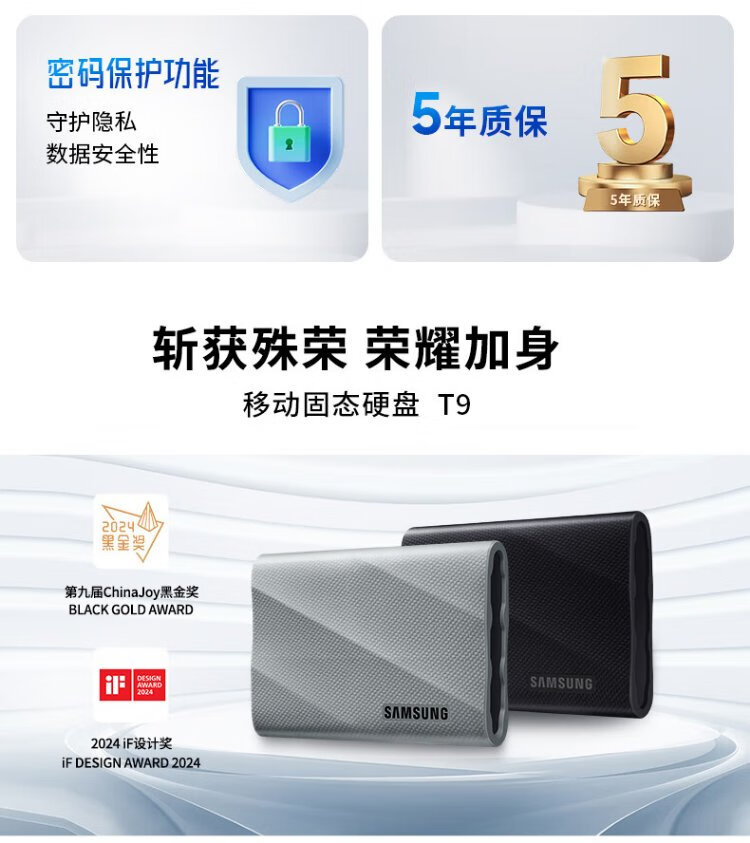 Samsung (SAMSUNG) 1TB Type-c USB 3.2 mobile solid-state drive T9 interstellar gray | JD.com limited NVMe reading speed 2000MB/s mobile phone direct connection to notebook external