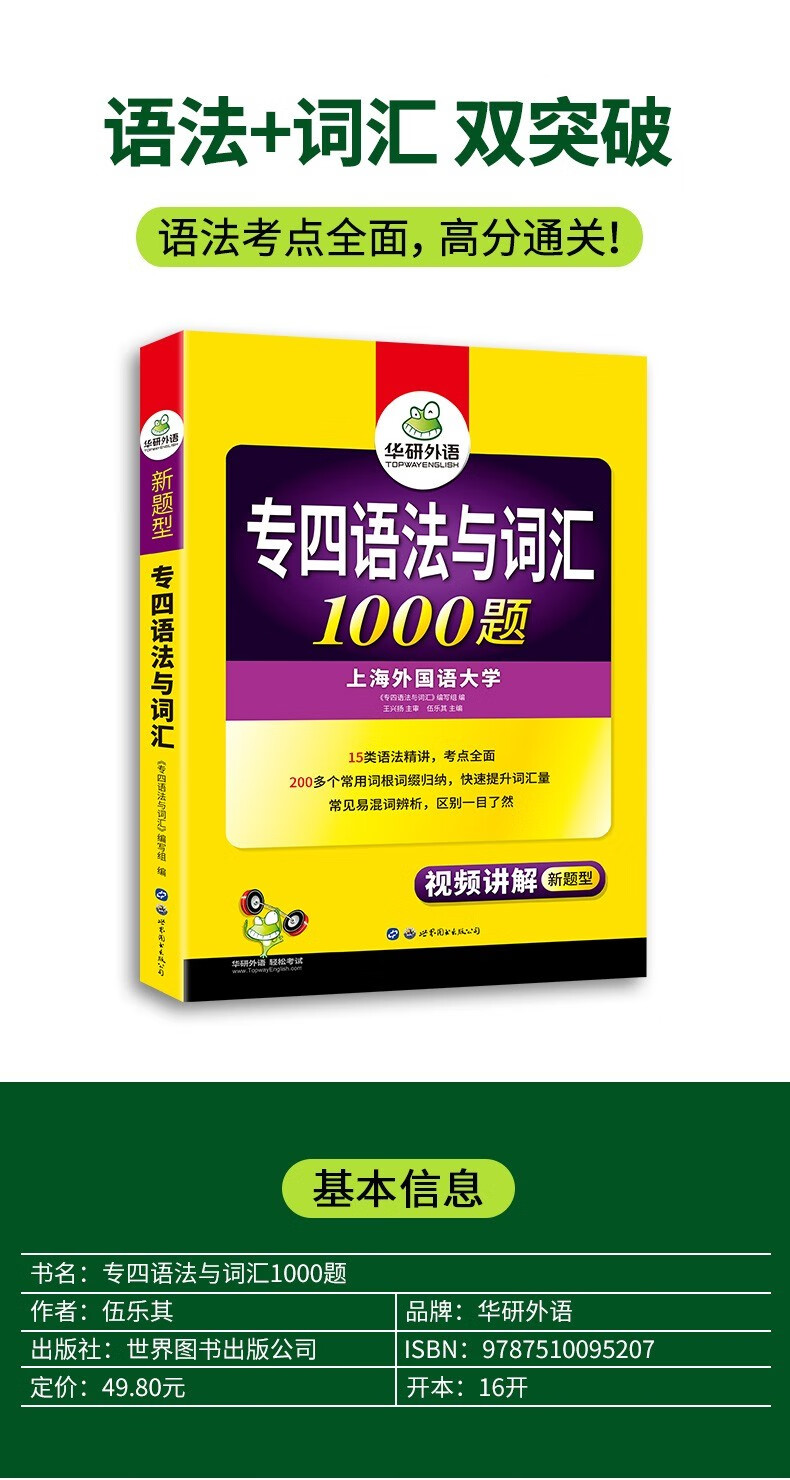 Applicable in 2025. A complete set of special training for Huayan Foreign Language College 4. 1000 grammar and vocabulary questions for Huayan College 4. New question types. 1000 grammar and vocabulary questions for English major 4. Word listening, reading and comprehension cloze. 1500 listening questions for English major 4.