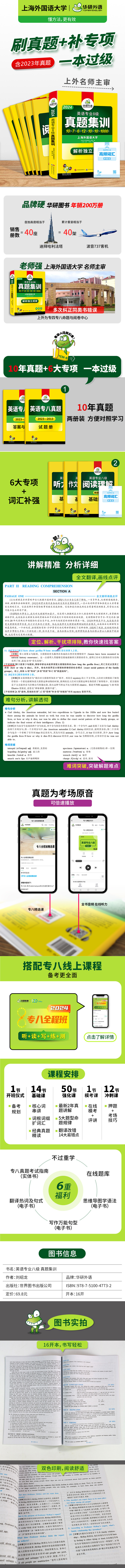备考2026英语专八真题集训试卷 上海外国语大学TEM8专8 华研外语英语专业八级真题含词汇阅读听力作文改错翻译