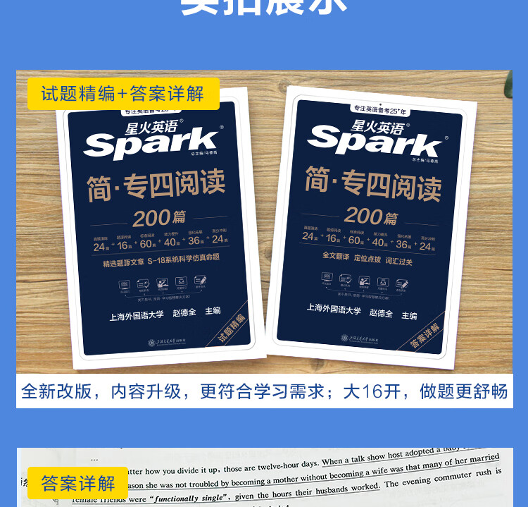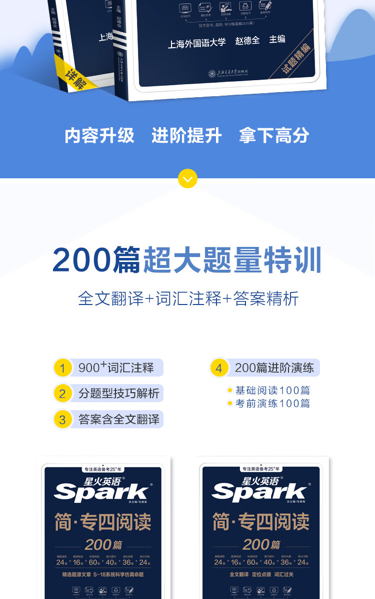 Offizieller Flagship-Store Spark English Specialty 4, spezielles Trainingsbuch zum Leseverständnis, kompletter Satz mit 200 Artikeln zur Vorbereitung auf das Englisch-Hauptfach Level 4 im Jahr 2026, echte Fragen, Volltextübersetzung, wichtige Vokabelnotizen, Specialty 4, Lesen, 200 Artikel