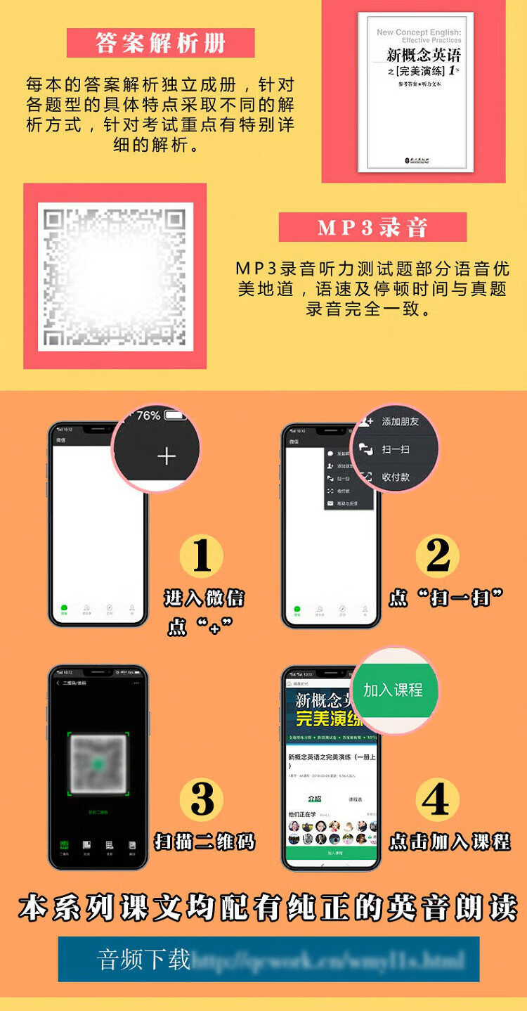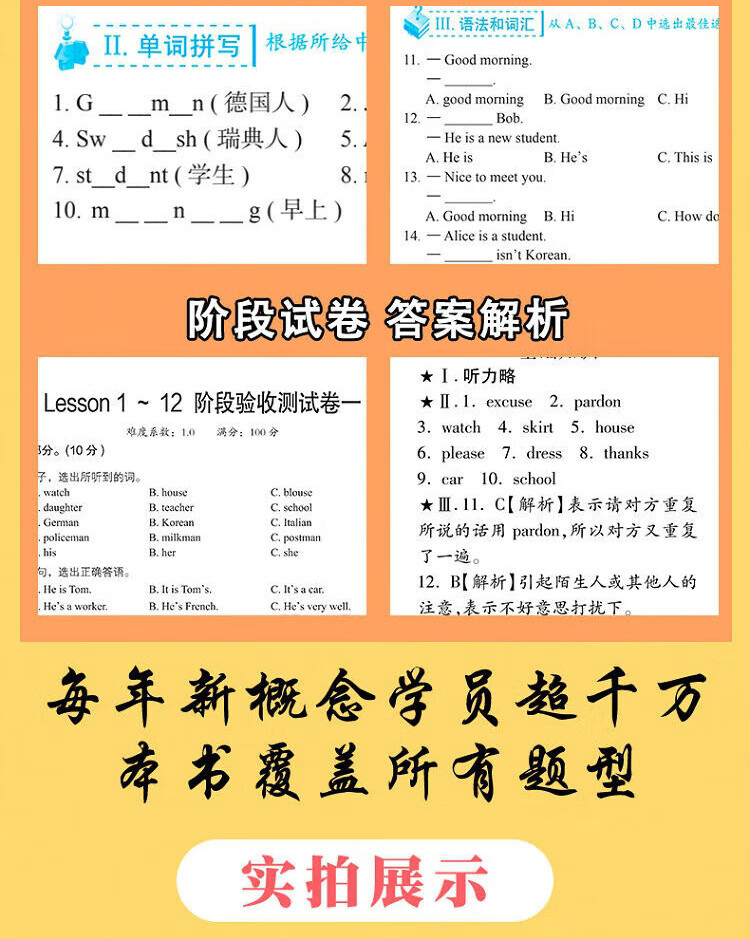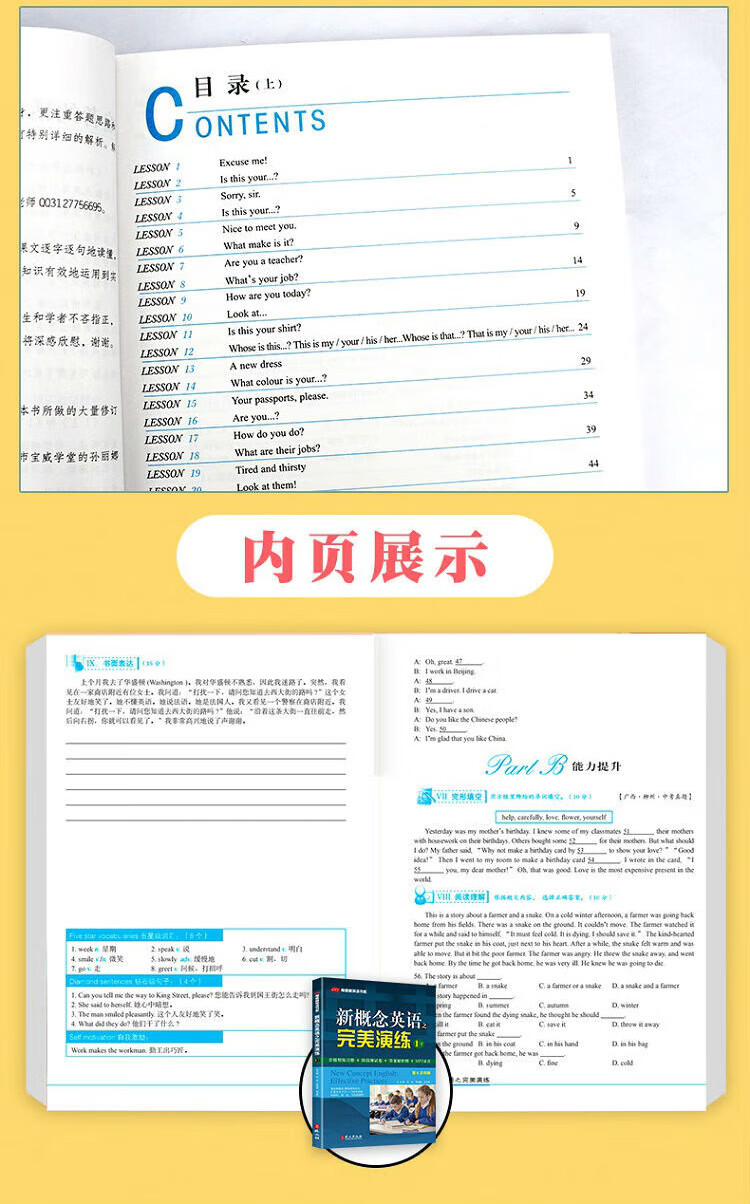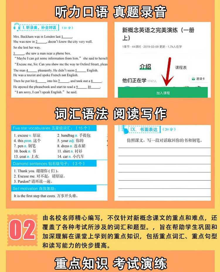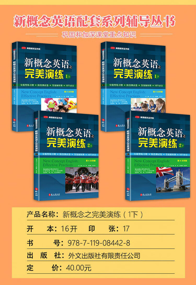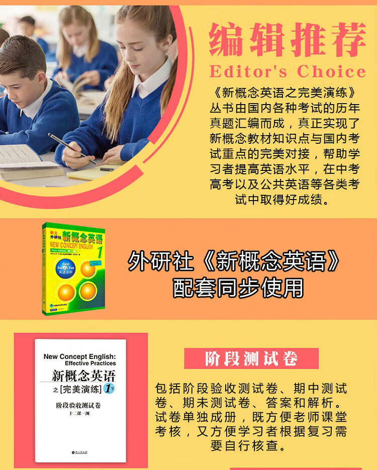 Perfektes Üben von New Concept English 1, Übungsbuch mit vollständigen Fragen, Prüfungsarbeit für die Bühne, Antwortanalysebuch, MP3-Aufzeichnung, die die Wissenspunkte jeder Lektion in 2 Bänden von New Concept abdeckt, eine Sammlung früherer Aufgaben für PET2/3 in der High-School- und College-Aufnahmeprüfung, einschließlich aller Fragetypen in den Bereichen Hören, Sprechen, Lesen und Schreiben