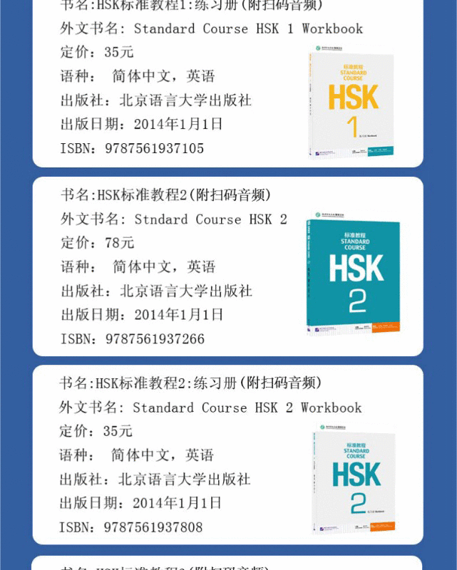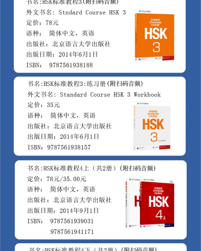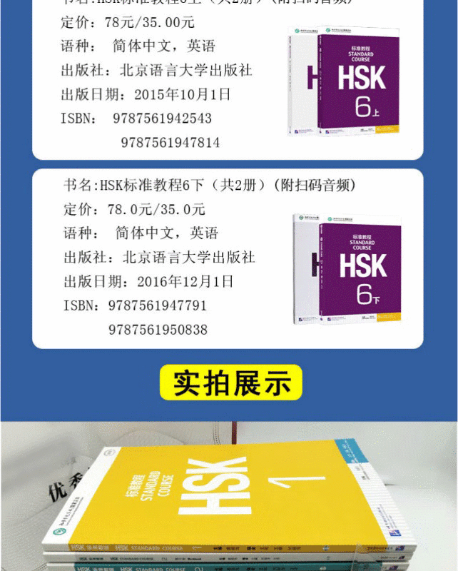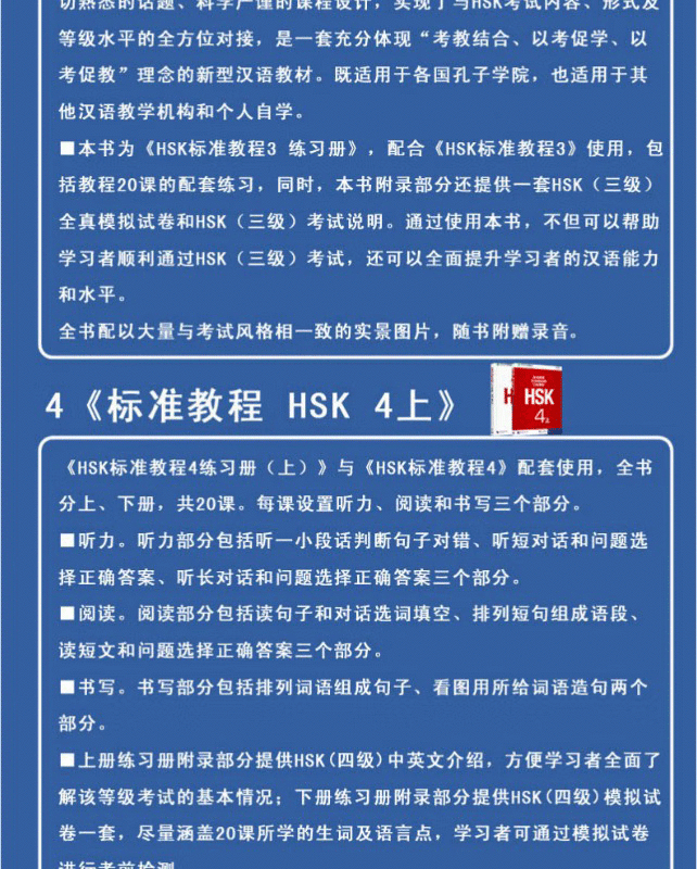 Optionaler HSK-Standardkurs 123456 (oberes + unteres) Schülerbuch + Übungsbuch + Lehrerbuch. Unterrichten von Chinesisch als Fremdsprache. Null-Grundkurs für Chinesisch. Neues Chinesisch-Kenntnisprüfungs-Unterrichtsmaterial für das Erlernen von Chinesisch als Fremdsprache. HSK-Standardkurs 4 Oberes Schülerbuch + Übungsbuch. 2 Exemplare
