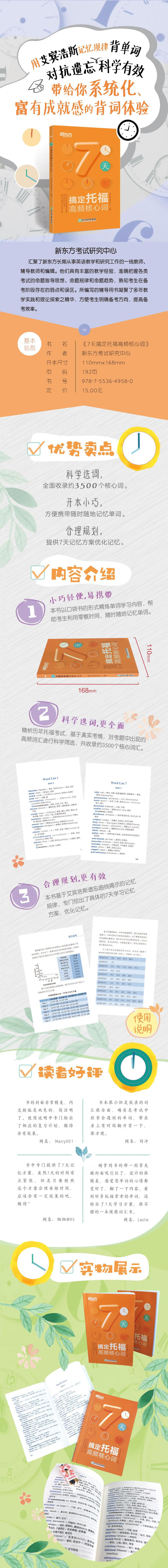 Master TOEFL high-frequency core words in 7 days TOEFL TOEFL vocabulary Master TOEFL high-frequency core words in 7 days TOEFL exam vocabulary book New Oriental