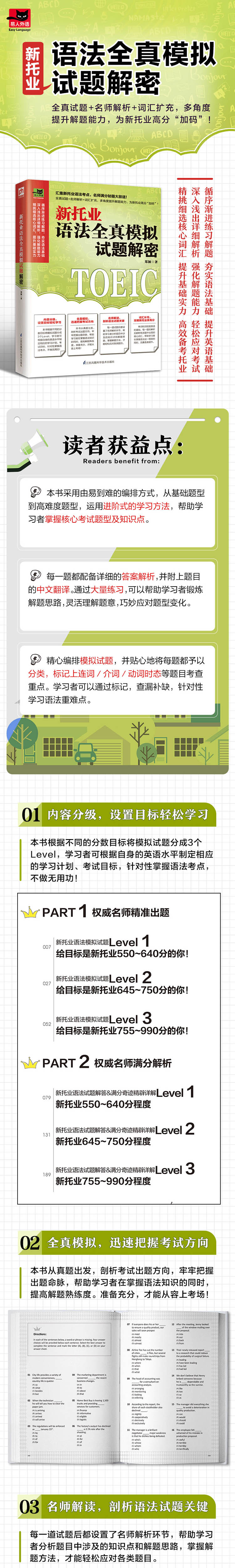 Satz mit 3 Bänden: Entschlüsselung der neuen TOEIC-Testfragen für Hörübungen + Entschlüsselung der neuen TOEIC-Fragen für Grammatikübungen + Entschlüsselung der neuen TOEIC-Fragen für Leseübungen