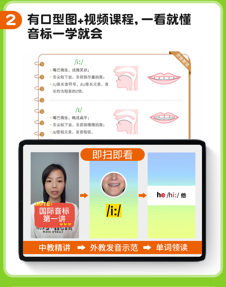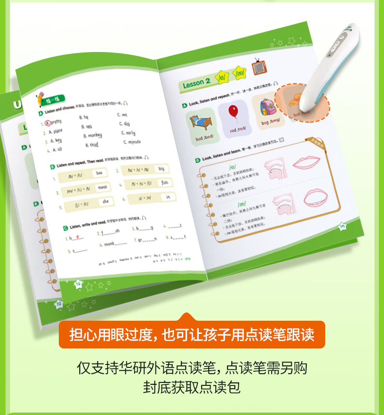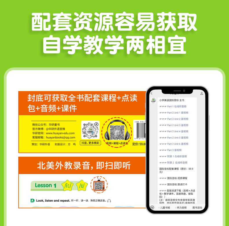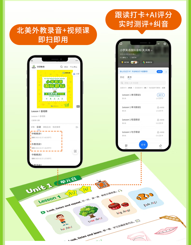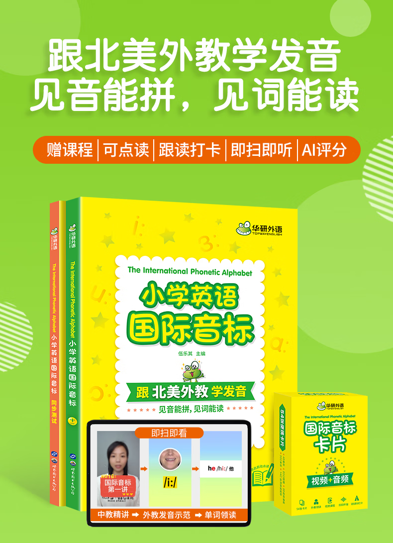 Huayan-Fremdsprache 2025, Herbst-Grundschule, Englisch, internationales phonetisches Alphabet, Vollfarbillustrationen + auswendig gelernte Phonics-Wörter. Nordamerikanische ausländische Lehrer lesen KET/PET/123456, 123456-Klasse