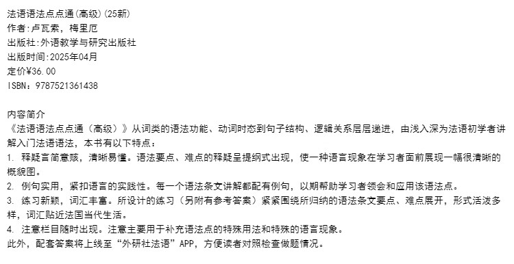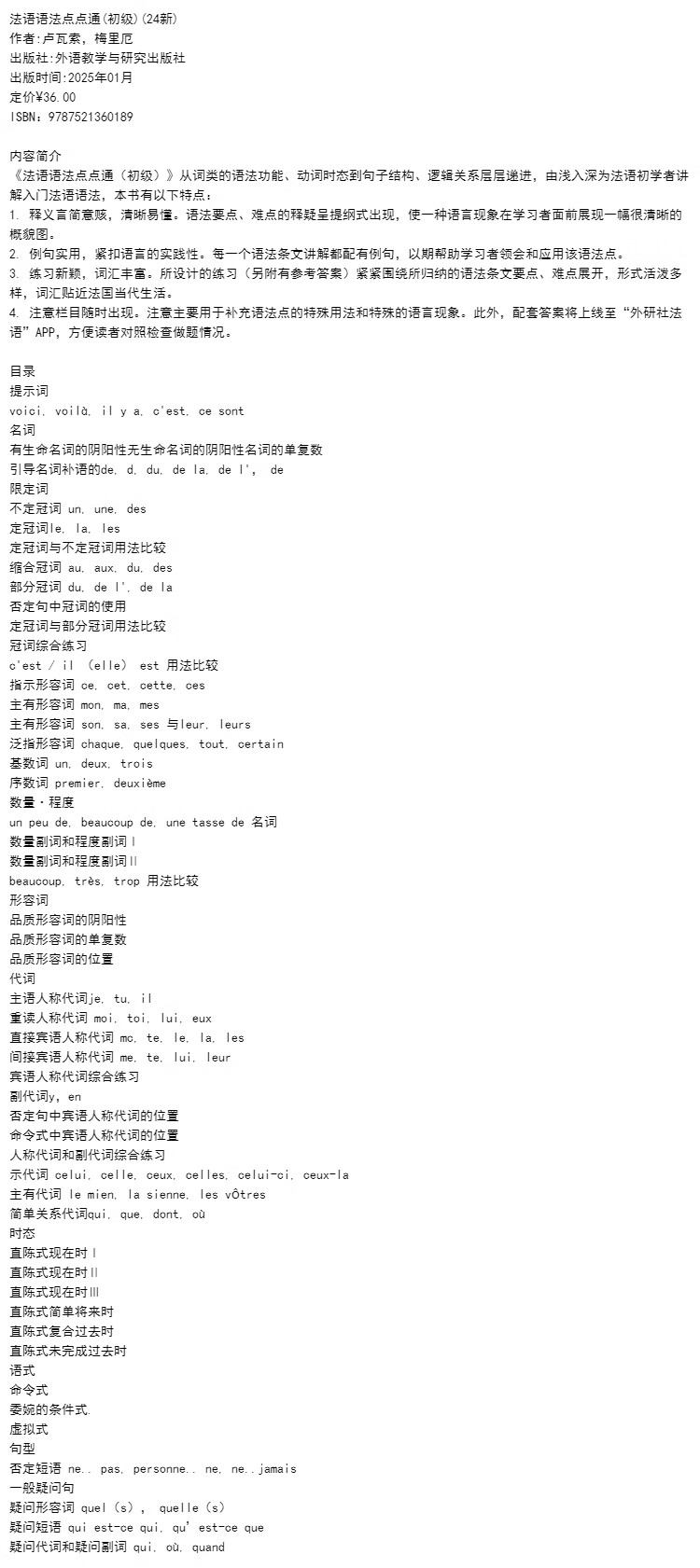 Optional French Grammar Basics (Beginner + Intermediate + Advanced) Genuine FLTRP French grammar books French self-study introductory textbooks Learning French textbooks Grammar special exercises French CET-4 and CET-6 Test French Grammar Basics (Elementary)