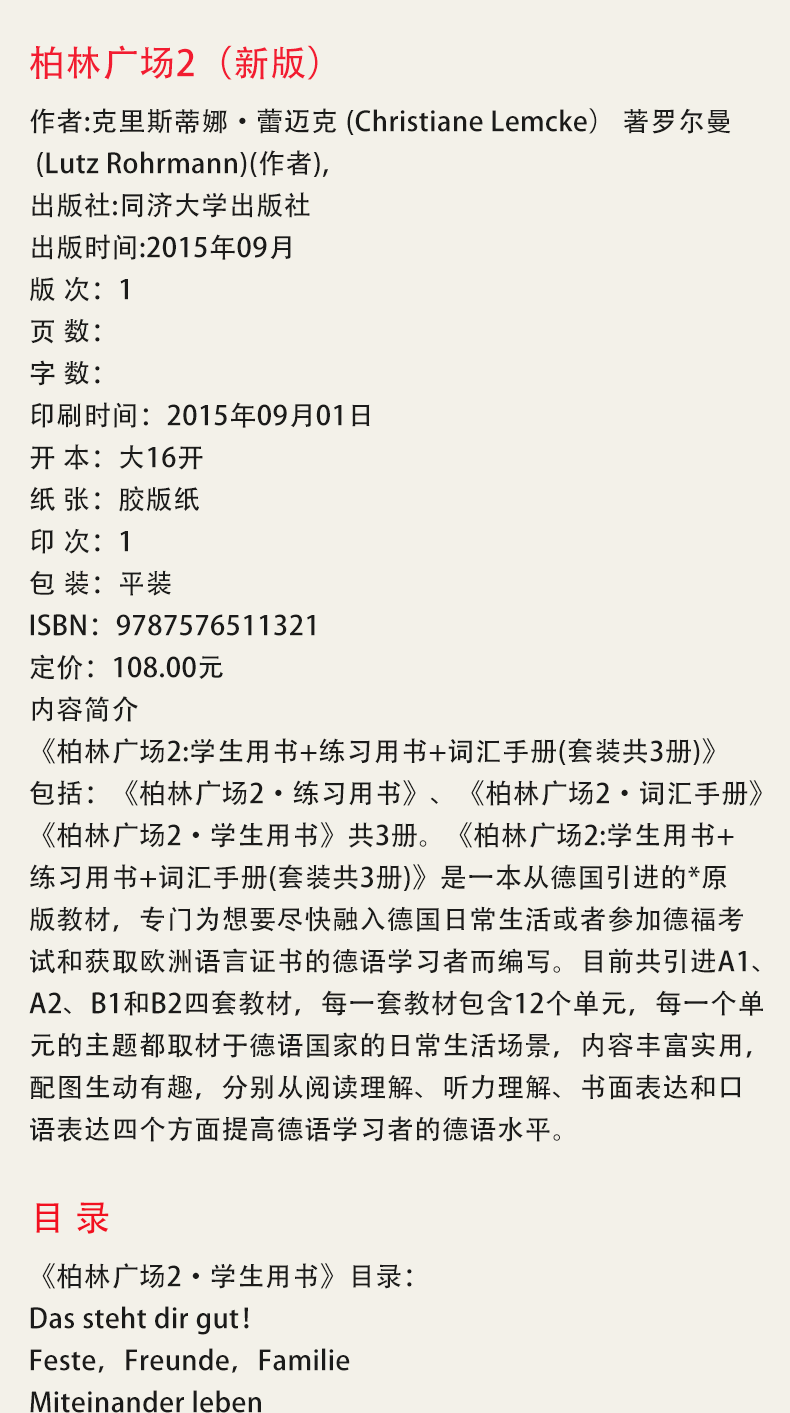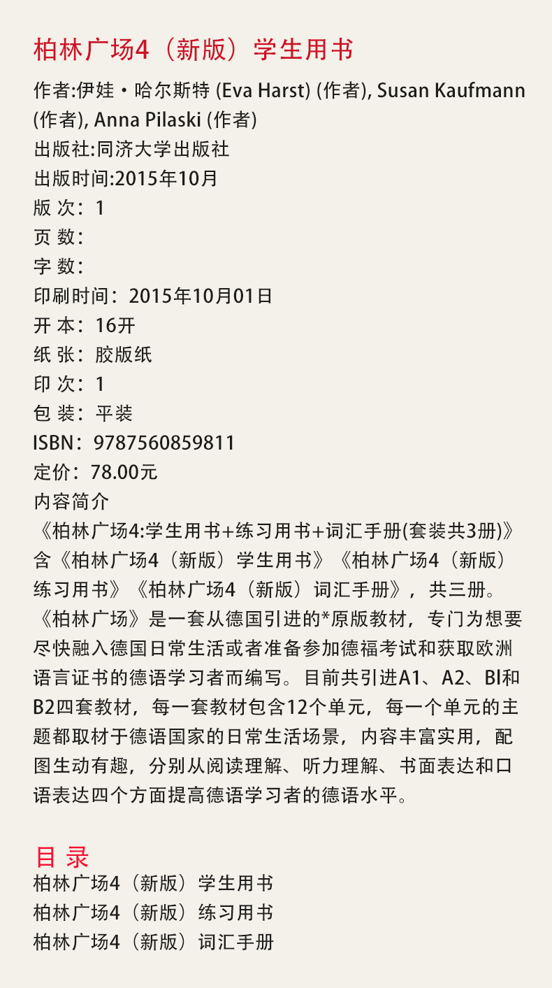 2025 revised edition Berlin Square complete set of 12 volumes A1A2B1B2 student book + exercise book + vocabulary manual German self-study introductory Tongji German vocabulary and grammar reading textbook German Lange Original German textbook Study in Germany TestDaF foreign language teaching textbook 2024 version Berlin Square 1