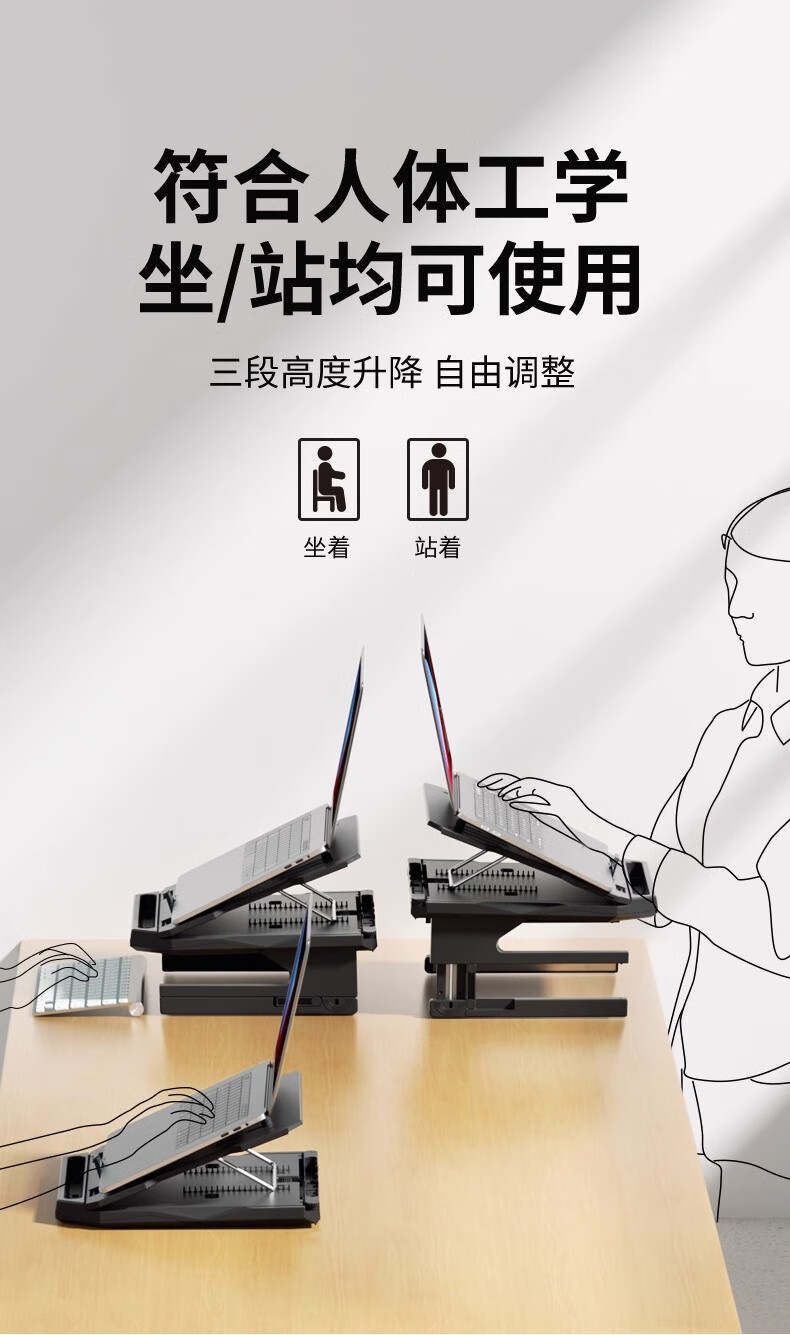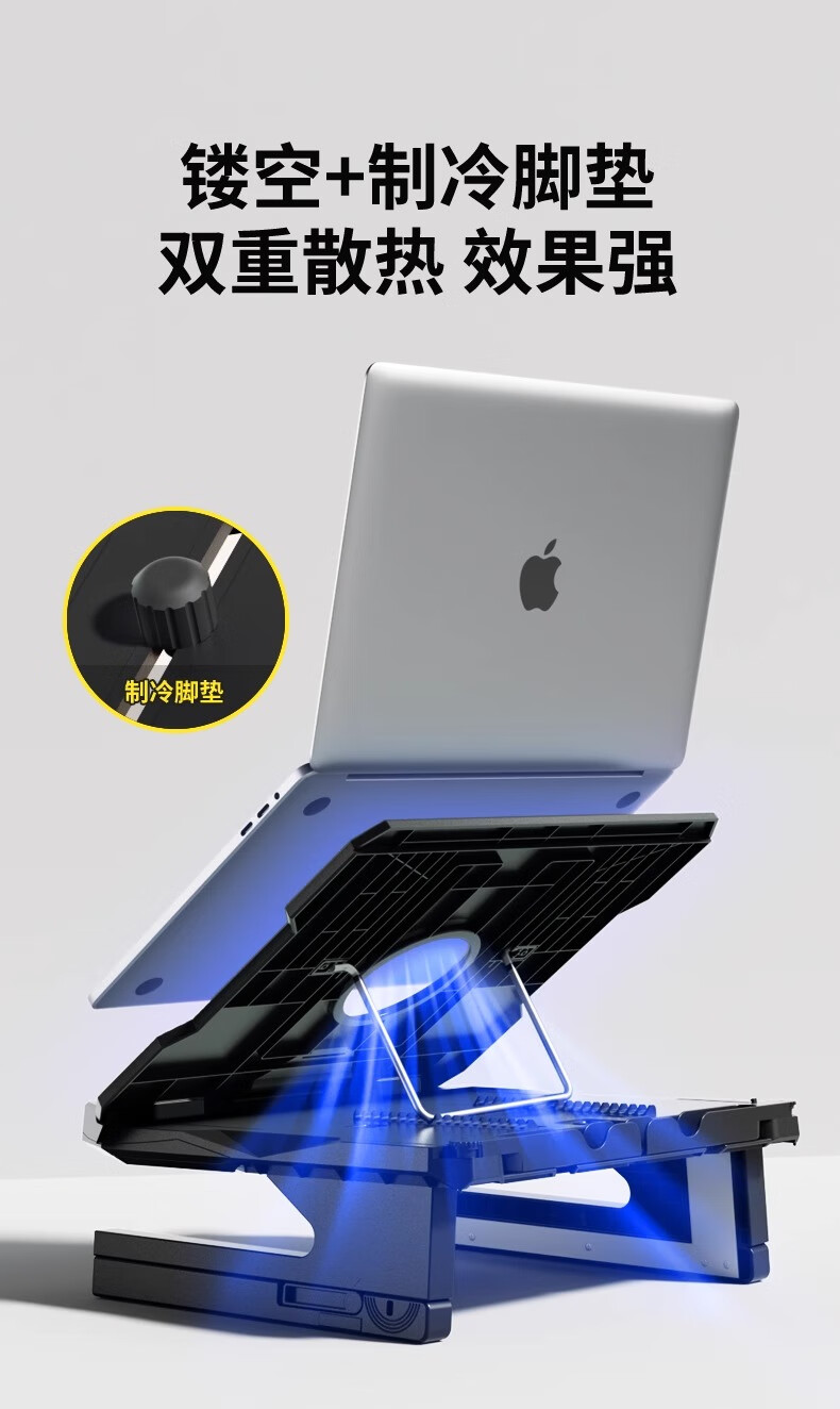 我爱谋思特电脑增高架笔记本支架电脑镂空升降式可调节支架托架桌面支撑架游戏本架散热底座360度旋转便携架 黑色【360°旋转底座+折叠收纳+手机支架】