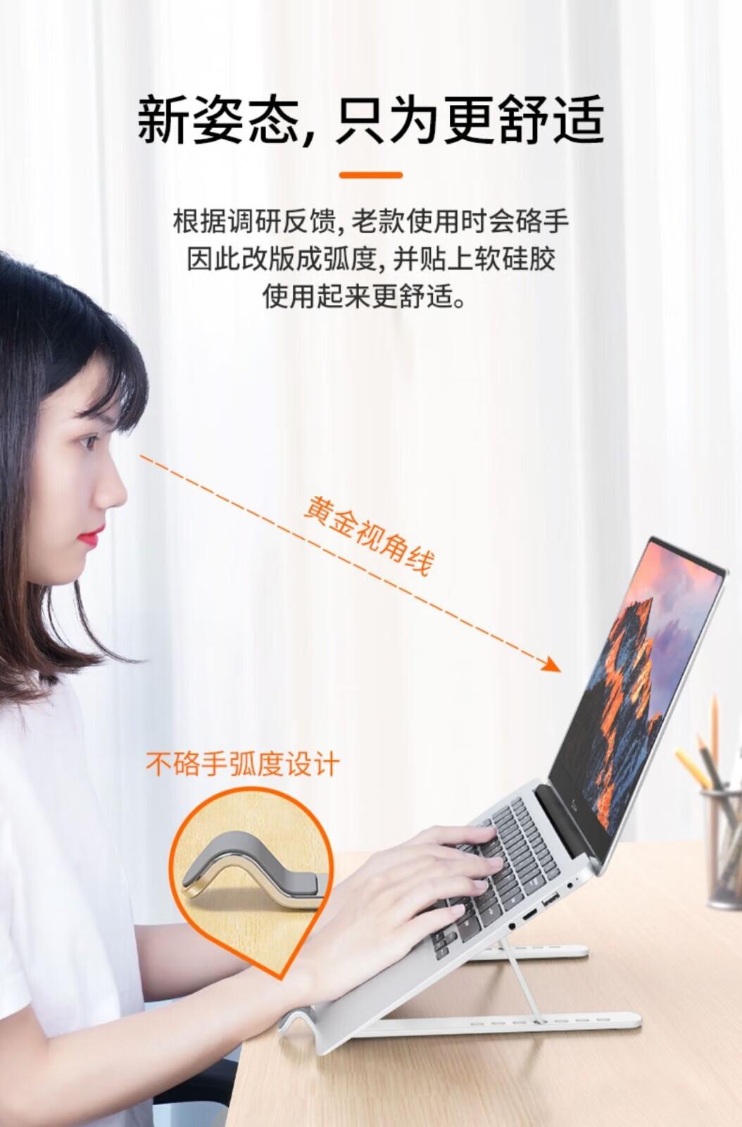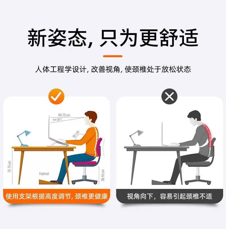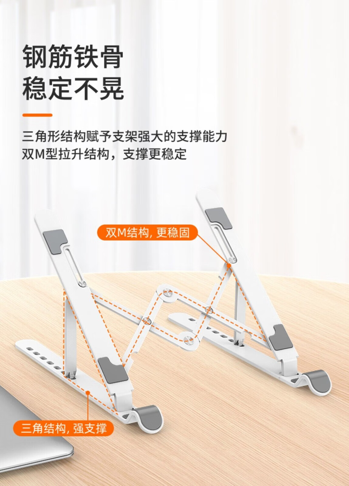 好又齐笔记本电脑支架折叠便携式桌面增高托架散热器适用联想华为苹果MacBook办公室底座升降铝合金支架  轻便可折叠【7档升降丨防滑胶垫】ABS塑胶款-黑