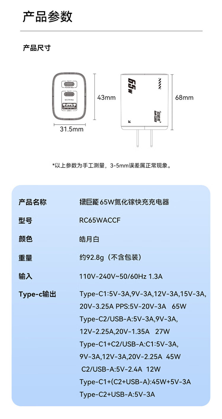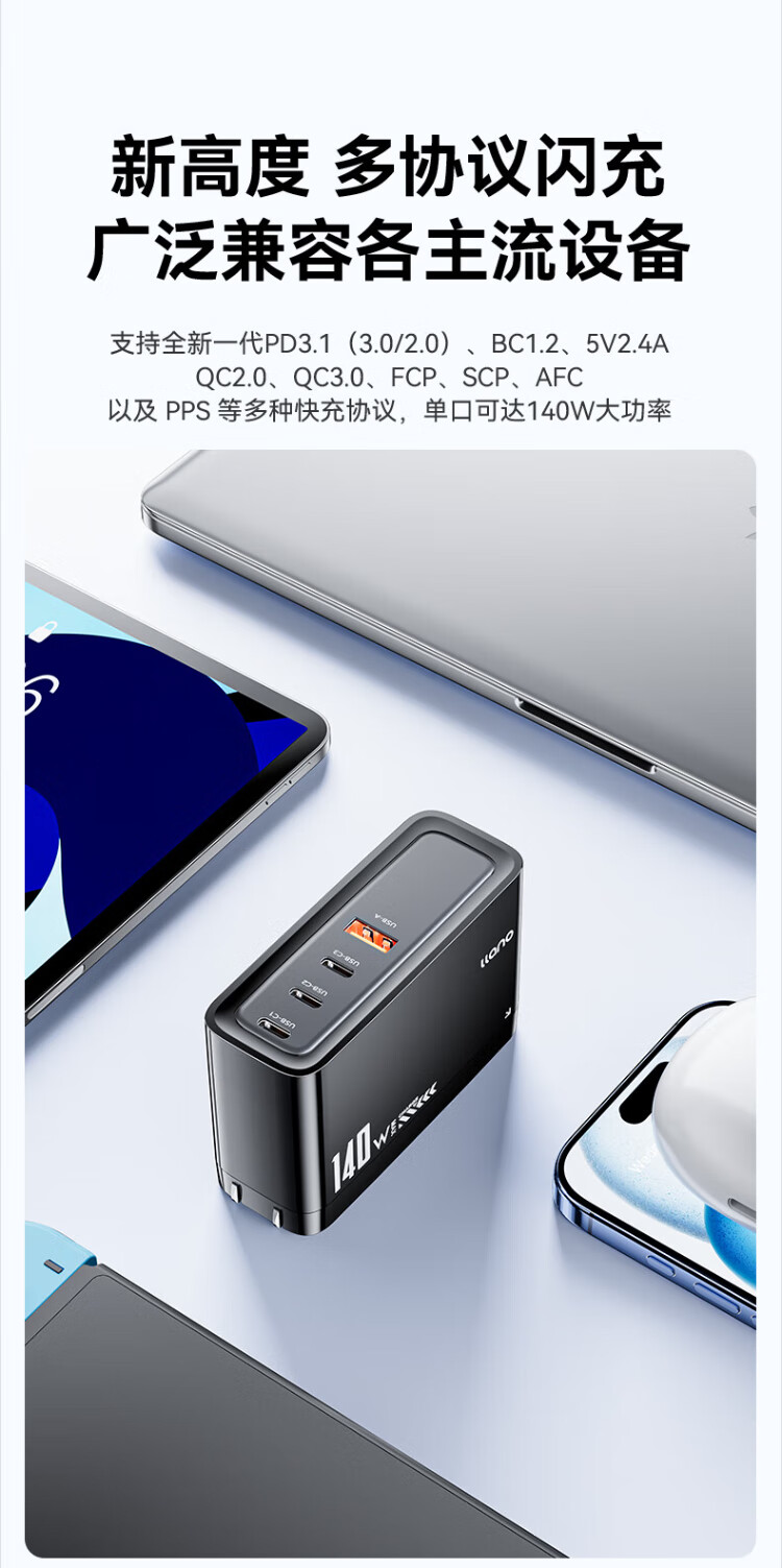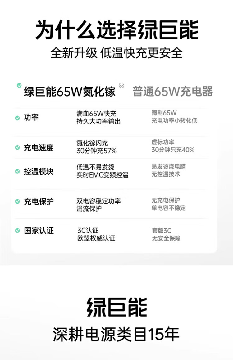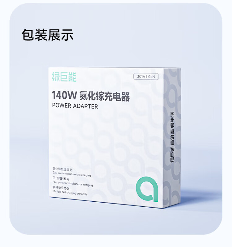 Green Giant Energy (llano) 65-W-Galliumnitrid-Ladegerät, Laptop-Set, PD-Schnellladung, geeignet für Apple 17, MacBook Pro, Huawei, Xiaomi, Lenovo, iPad Pro, Multi-Port-Netzteil, 100-W-Set, 2C1A, Schnellladung – mit 1,8 m langem schwarzem Kabel