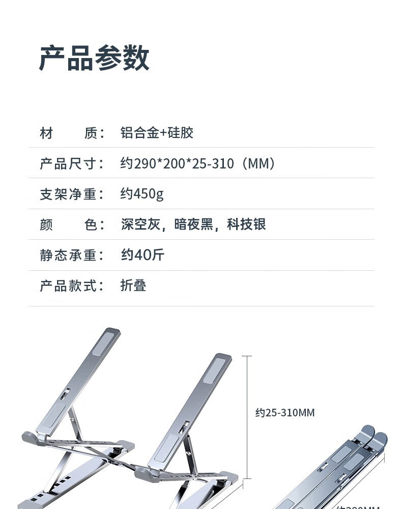 Support pour ordinateur portable, dissipation thermique, support de bureau, support pliable, suspension portable en alliage d'aluminium, support surélevé réglable, ordinateur portable de jeu pour tablette, placement de bureau de levage et d'abaissement, modèle standard - plastique ABS de petite taille, noir, ne prend en charge que les téléphones mobiles et les tablettes