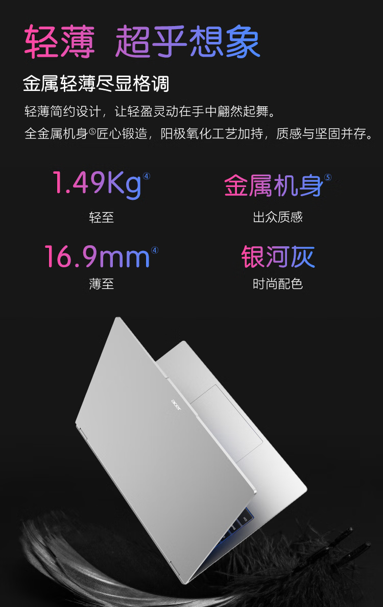 Acer Extraordinary Go Pro 2025 new product 14-inch high-performance thin and light laptop Core i5/i7 2.8K screen 120Hz high brush office business design laptop i5-13500H 2.8K screen 14-inch gray 32G memory 1TB high-speed solid state drive