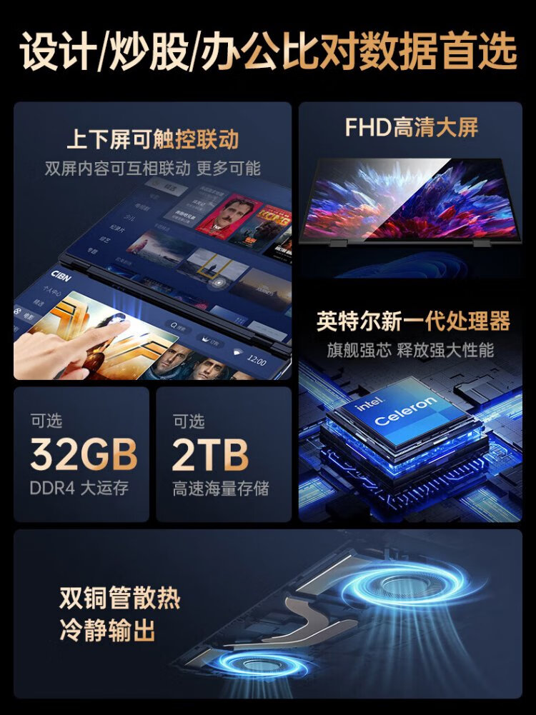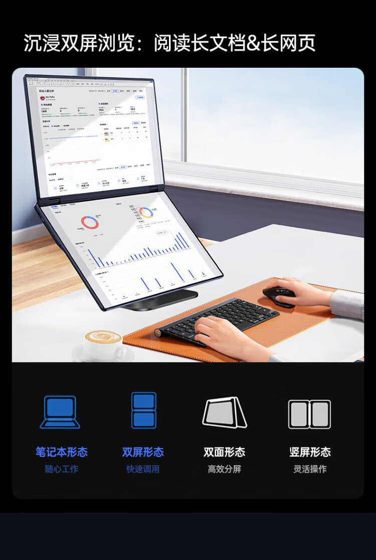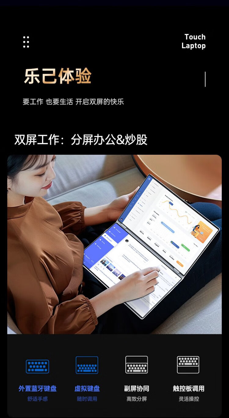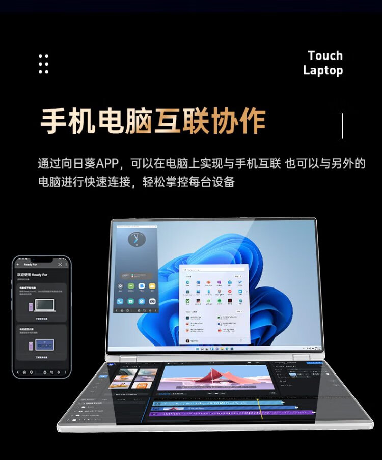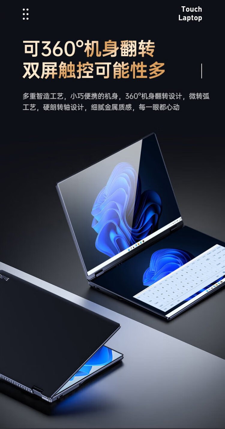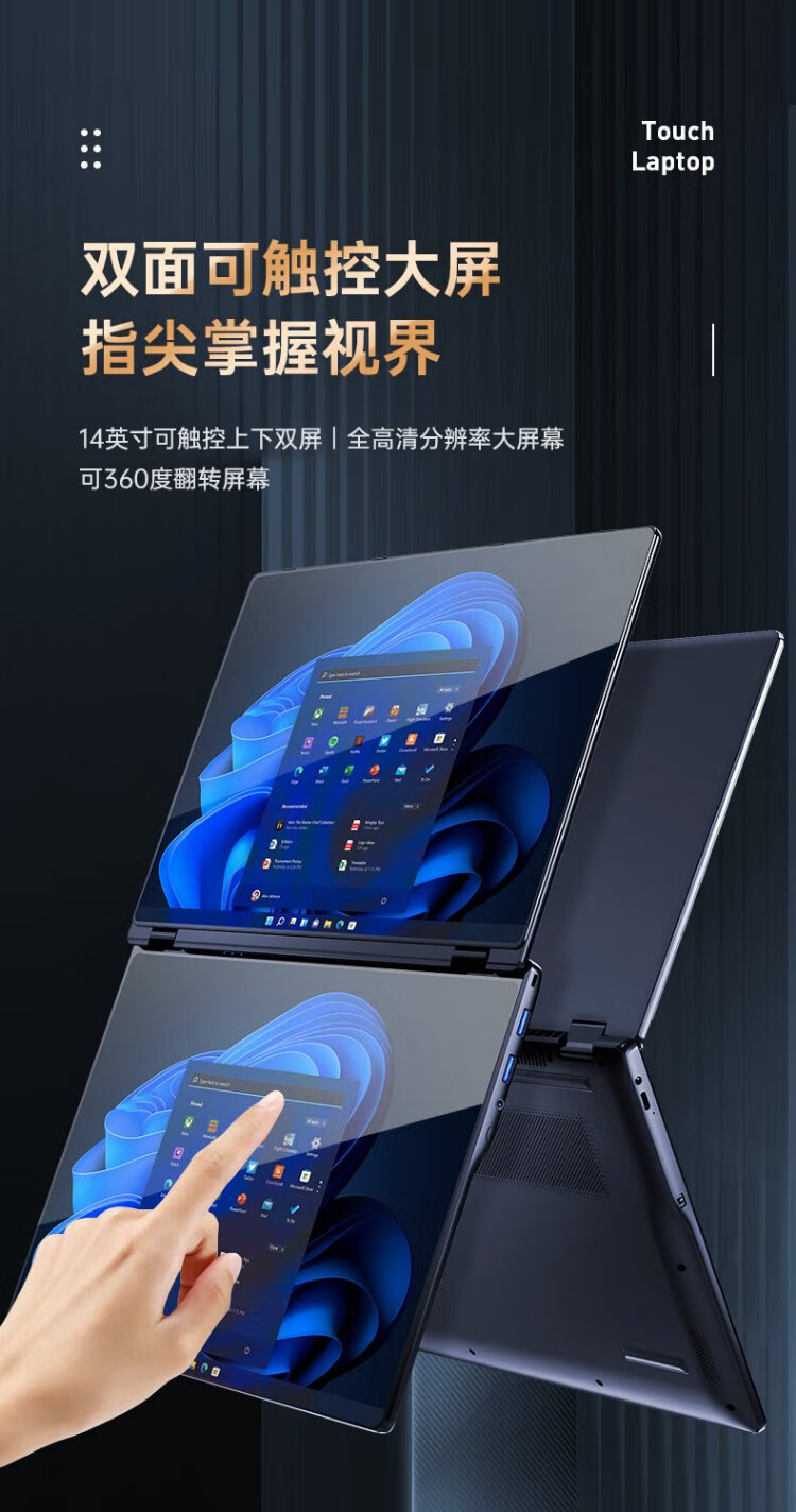 Dere 2025 new AI smart laptop dual touch screen flip folding notebook 14-inch touch screen portable tablet for designers and editors 360 yogaAI dual screen touch notebook 32G memory + 512GB solid state