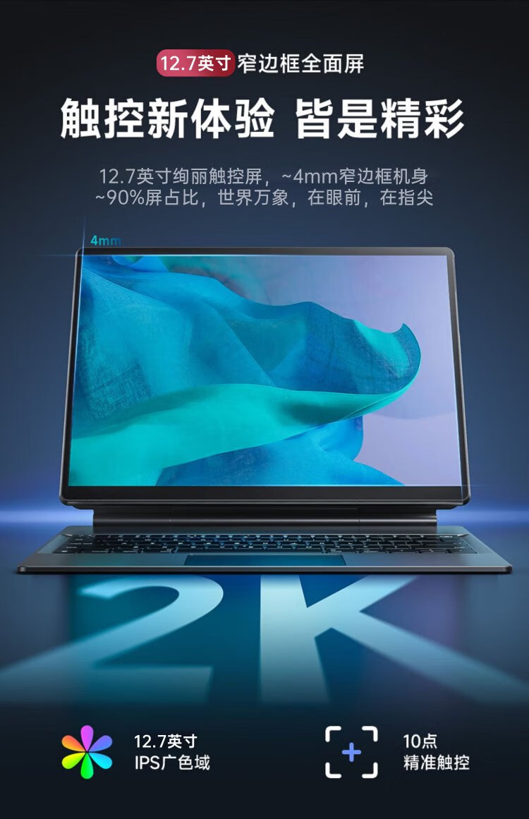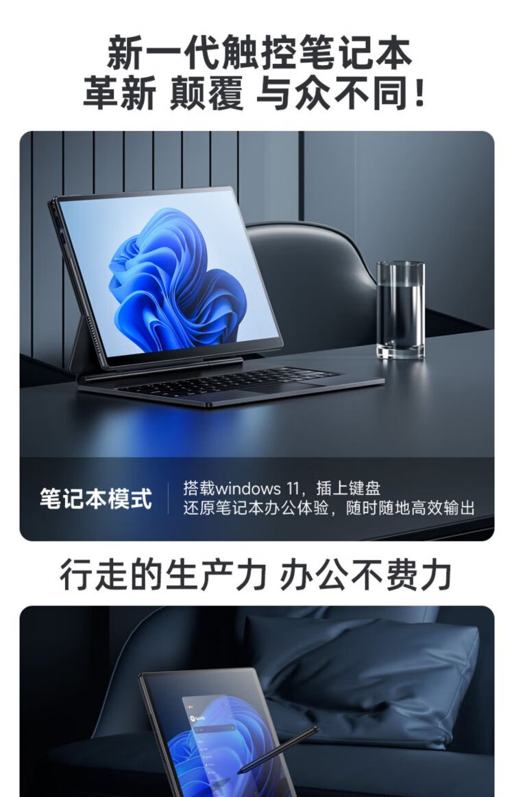 Dere (dere) T30Pro 2025 new product + 2K touch screen laptop tablet two-in-one Windows system metal ultra-thin business portable office computer thin and light notebook 12th generation Core multi-core丨2.8K screen丨DDR5 competitive high configuration 24G memory 1TB high-speed solid state