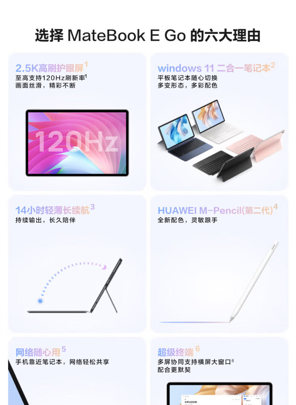Huawei exhibition machine matebook E GO notebook and tablet 2-in-1 computer, thin and portable business 2K touch screen genuine, cost-effective recommended EGO 16G+512G card version, tablet and notebook 2-in-1, genuine from the National Bank, standard + 699 gift package