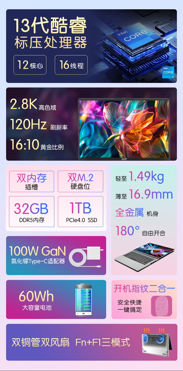 Acer se ahorra un 20% en subvenciones nacionales. Extraordinaria computadora portátil Ai, delgada y liviana, de alto rendimiento, nivel Go Pro, pantalla de alta actualización de 2.8K y 120 Hz, voltaje estándar central, juegos para estudiantes de alta gama, nuevo i5H de 12 núcleos, 32G, pantalla de 120 Hz y 2.8K, gris