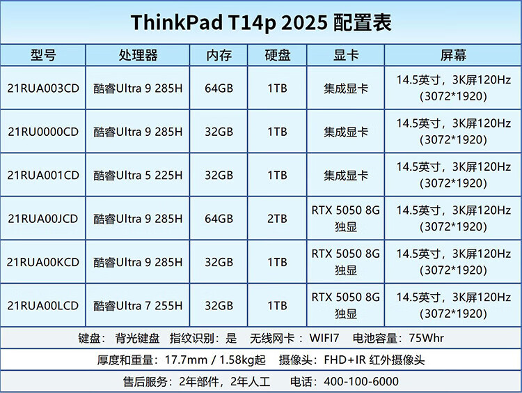 ThinkPad 20% national subsidy T14p AI 2025 new Core Ultra processor Lenovo 14.5-inch 3K high-performance standard voltage engineer's laptop Ultra 9-285H 32G 1TB-00CD
