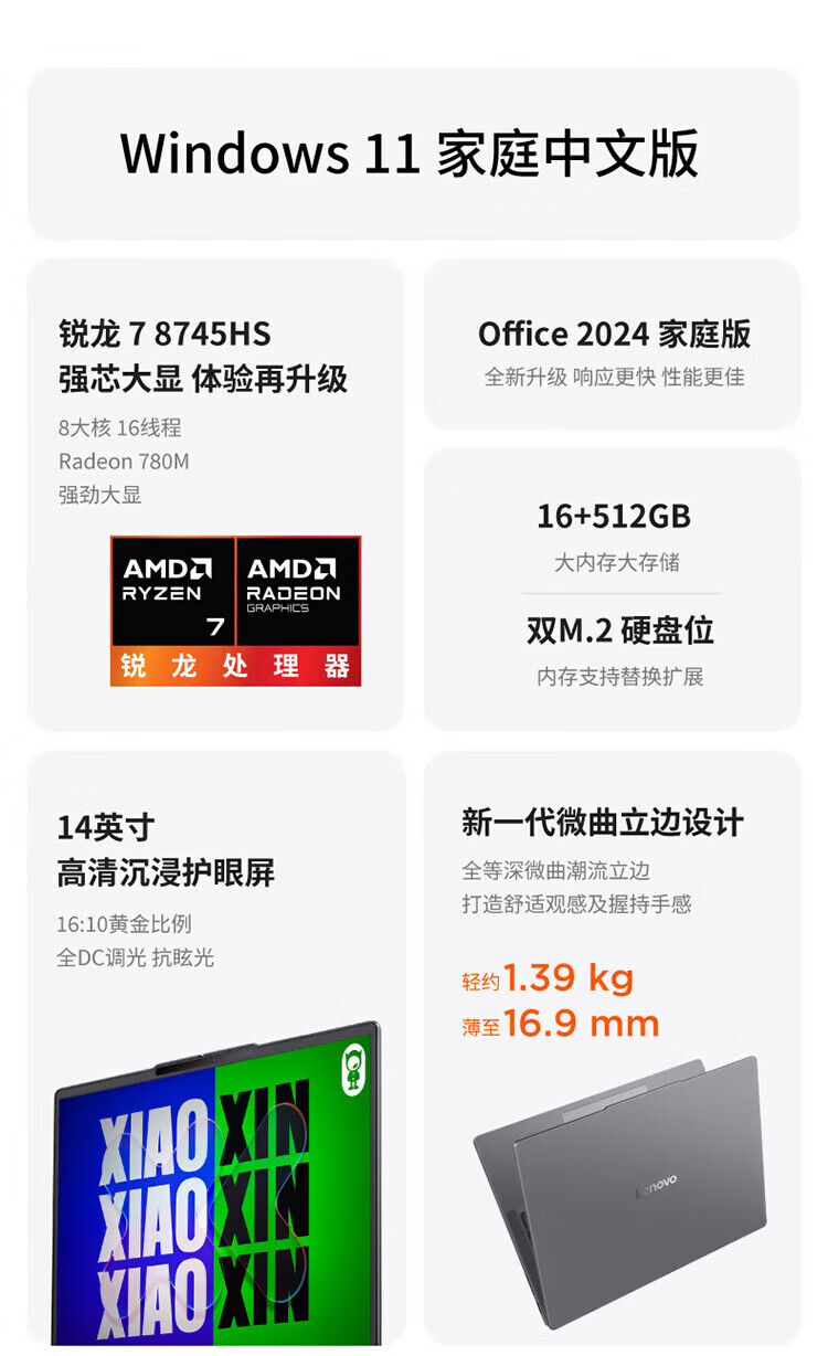 Lenovo Xiaoxin 14/Xiaoxin Pro14GT AI Yuanqi 2025 new product optional subsidy high-performance thin and light laptop student portable office notebook standard pressure Ryzen R7 24G 1T Xiaoxin Pro14 national supplement 14-inch full screen