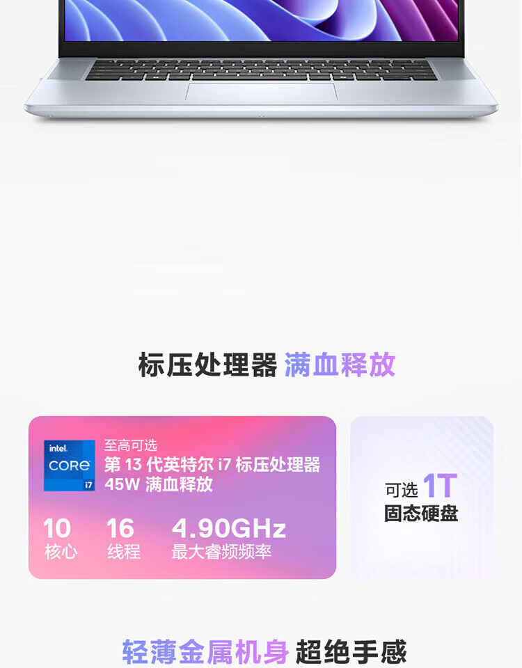 Dell (DELL) national subsidy 20% Dell laptop high-performance thin and light 16-inch Inspiron 16plus7640 Core i7 student certified entrance office computer notebook i5-13420H 16G 1TB