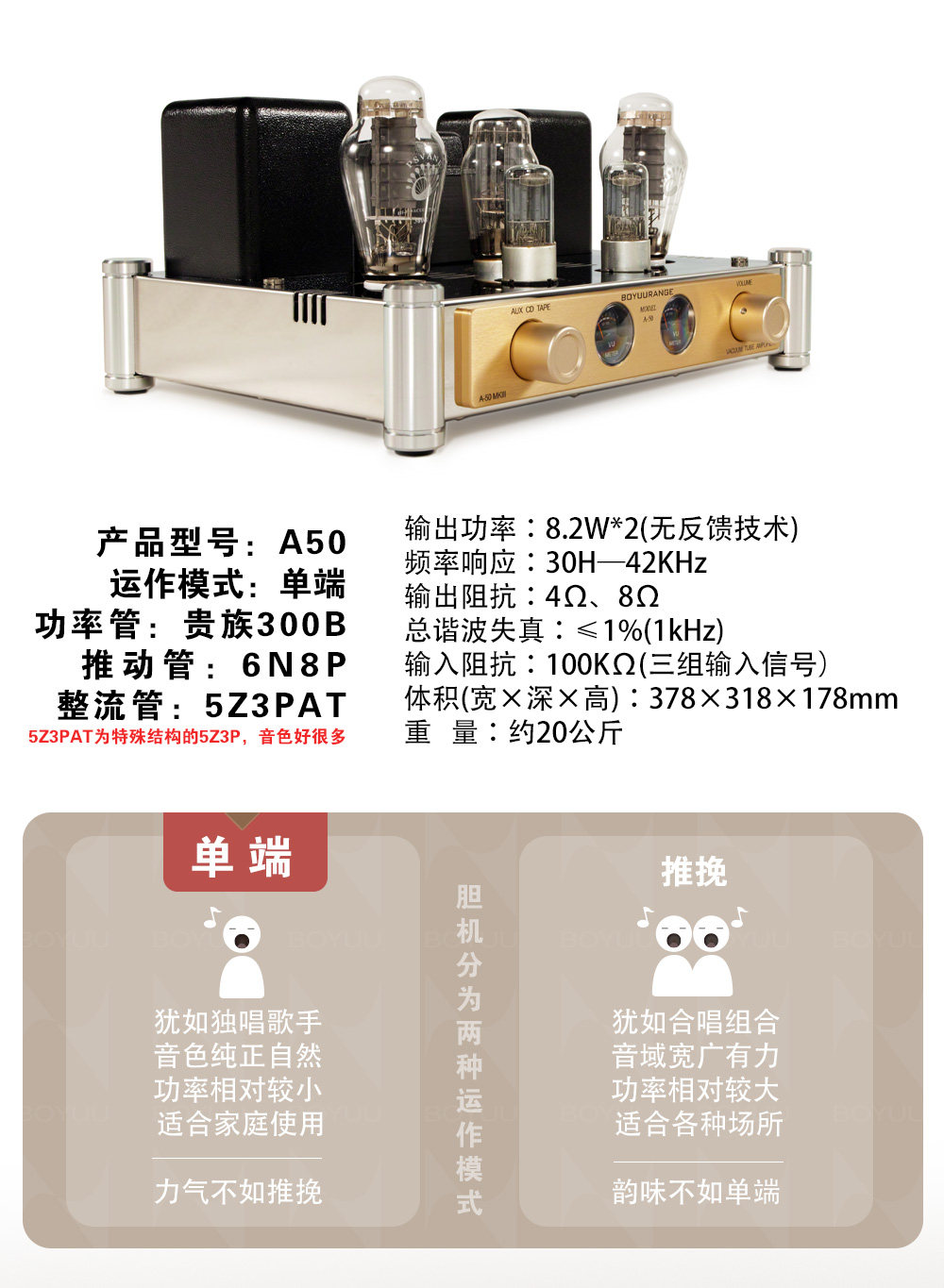 Bozhiyun 300B amplifier pure power amplifier A50 tube single-ended fever HIFI audio REISONG direct sales
