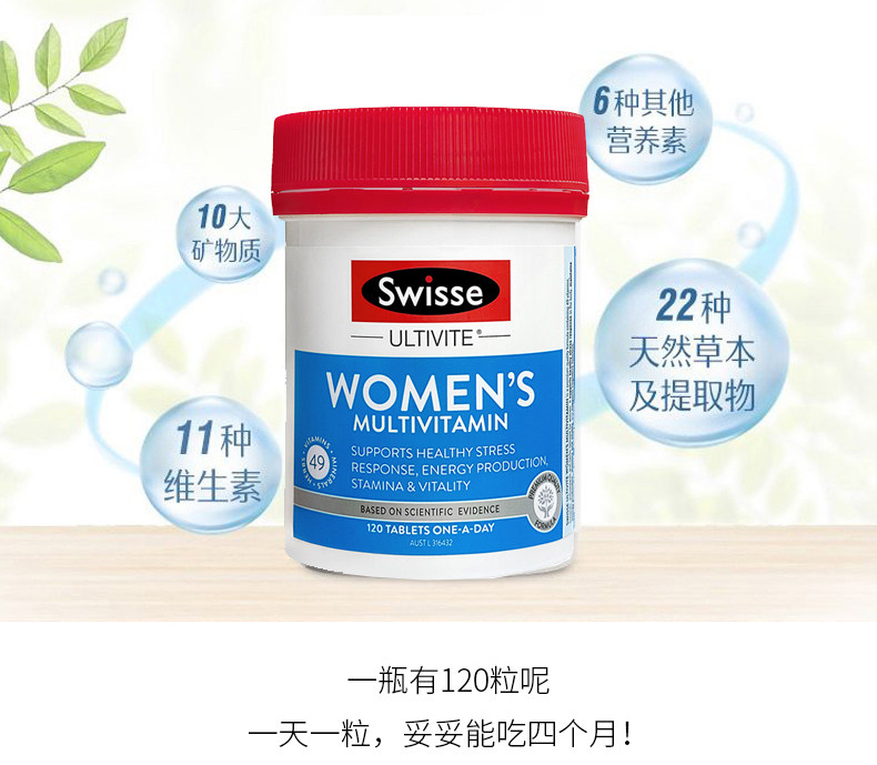 澳洲Swisse女性专用活力复合女士舒缓压力保健综合维生素120/60粒