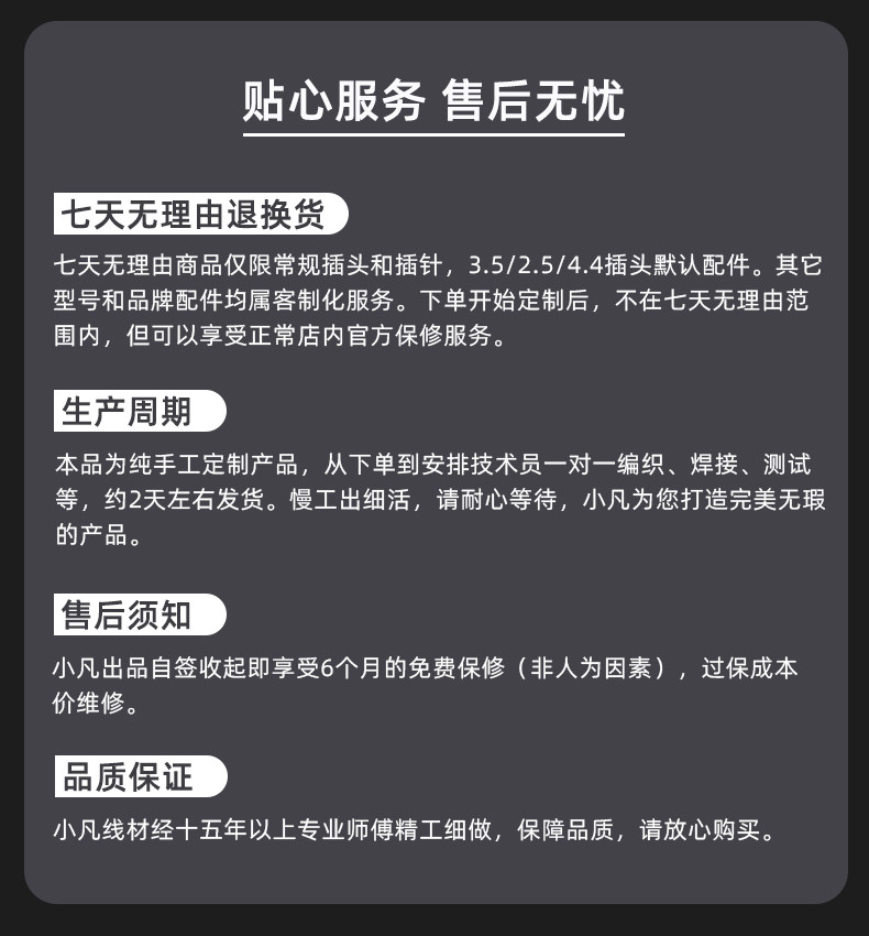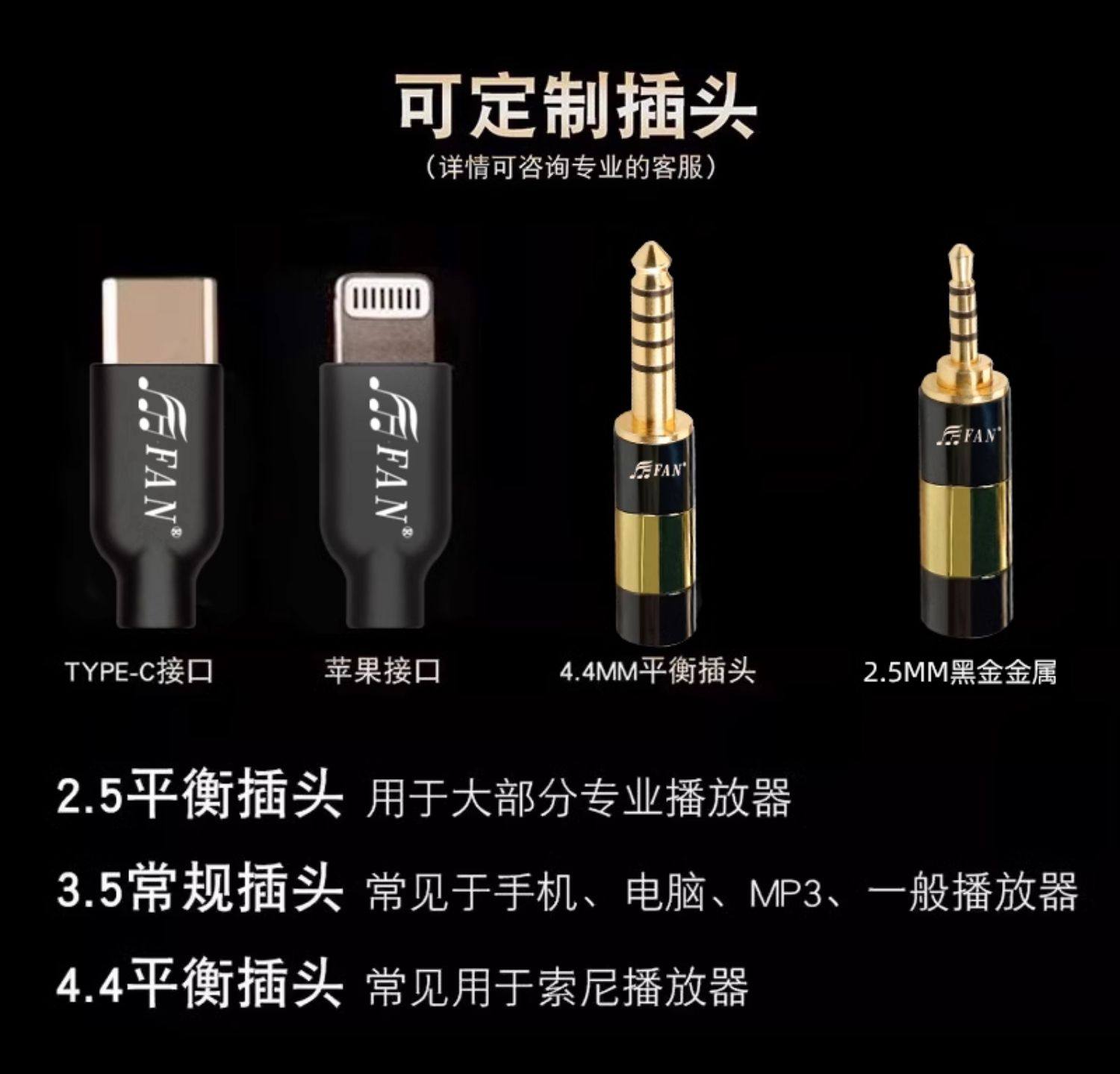 长度 3.5mm插头/1.1m,2.5mm插头/1.1m,4.4mm插头/1.1m,TYPE-C插头/1.1m,苹果插头/1.1m