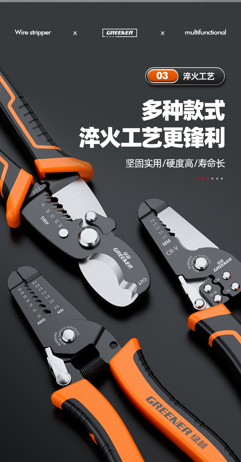 绿林剥线钳子拔线多功能专业级剪线钳扒皮压线钳电工工具拨线钳子
