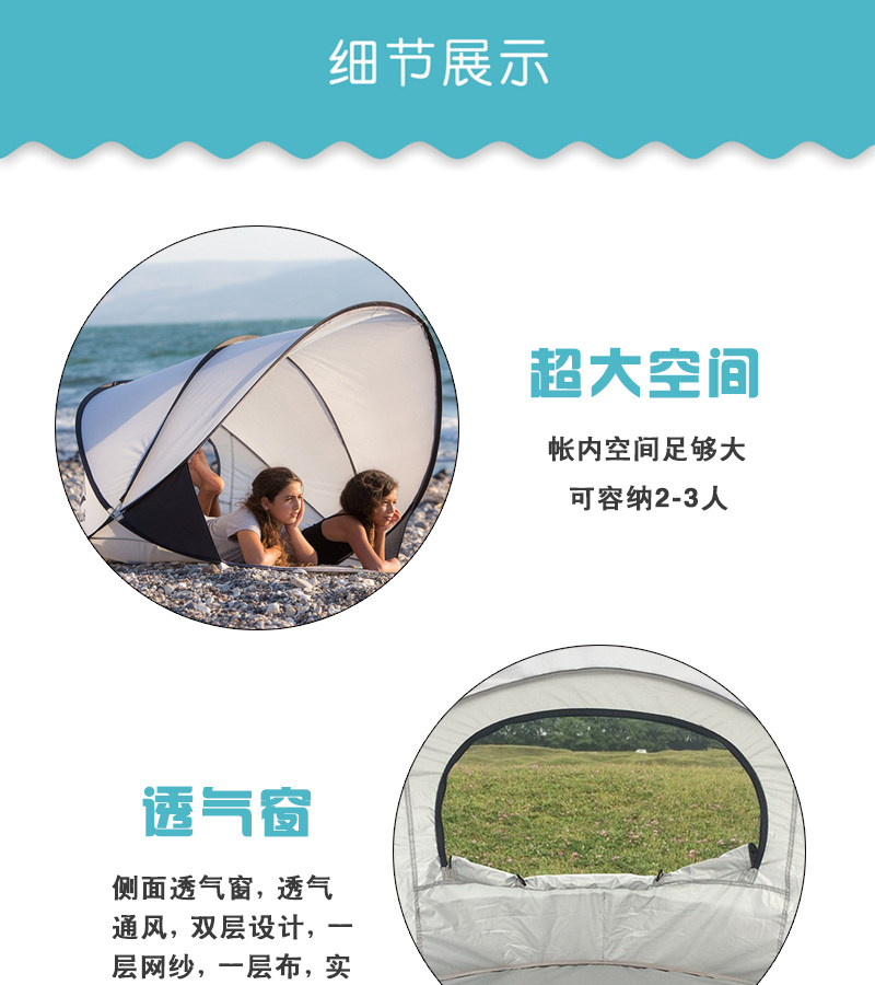 Fully Automatic Beach Outdoor Tent for 2-3 People, Quick Setup, Easy Sunshade, Sun Protection, Fishing, Park Leisure Tent