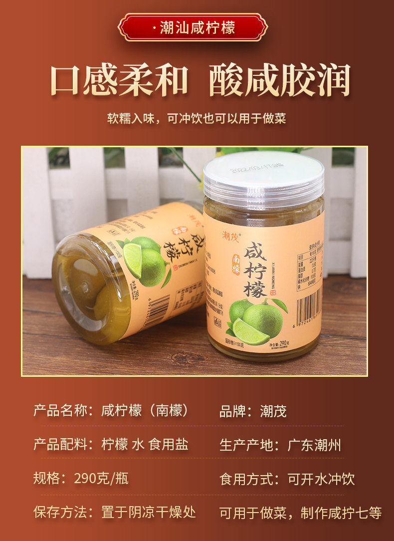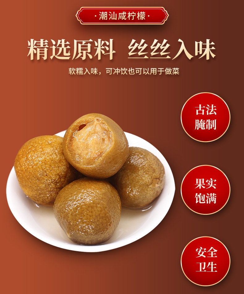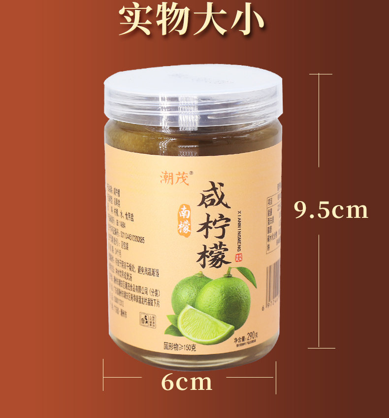 Gesalzene Zitrone nach Hong-Kong-Art Qilaotan aus der Dose Chaoshan gesalzene Zitrone 800 g gesalzene Kumquat gesalzene Wasserpflaume große Flasche eingelegtes Essen mit Südzitrone