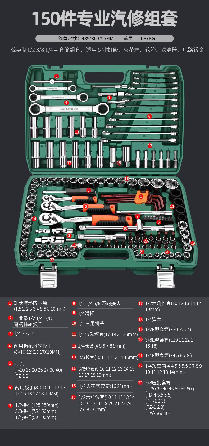 绿林汽修工具套装棘轮快速套筒扳手套管汽车万修车能摩托维修组合