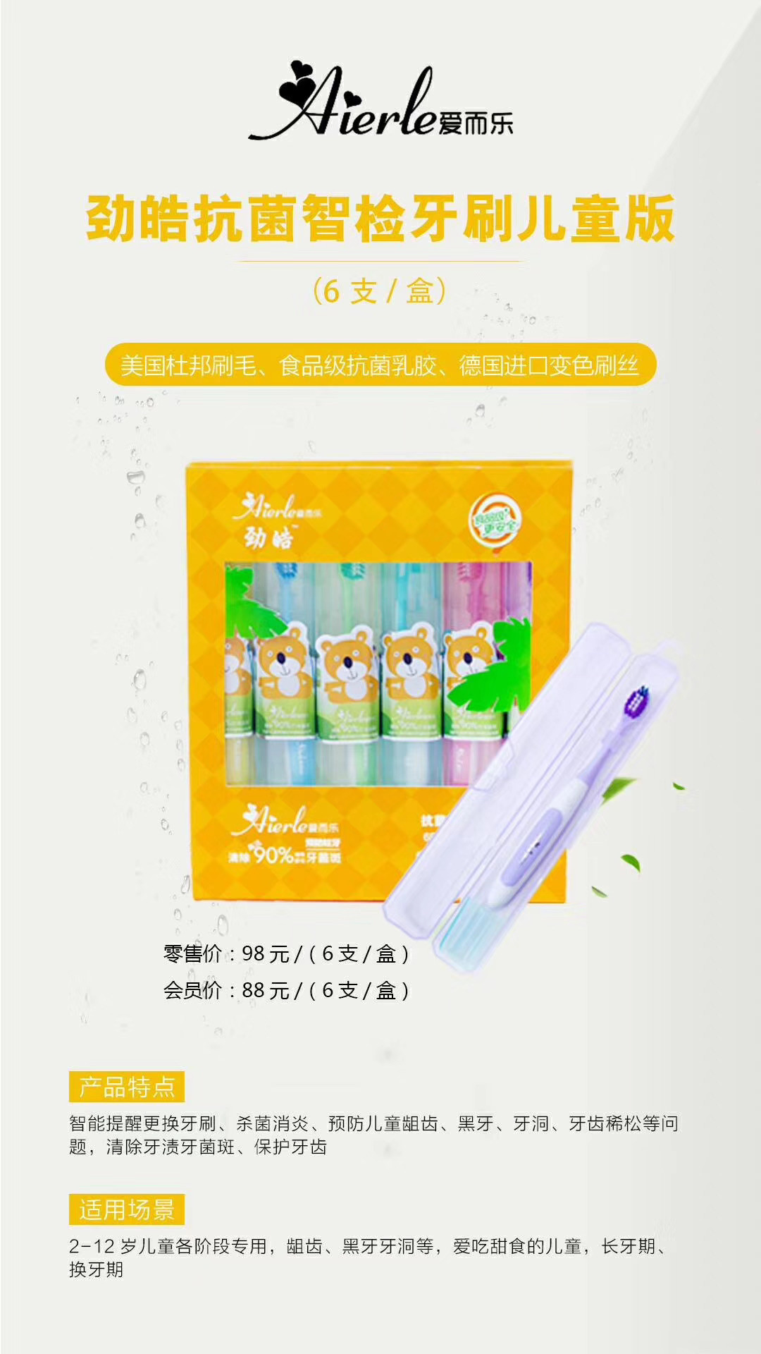 爱而乐劲皓牙刷特殊乳胶工艺自带智检功能的抗菌牙刷儿童牙刷