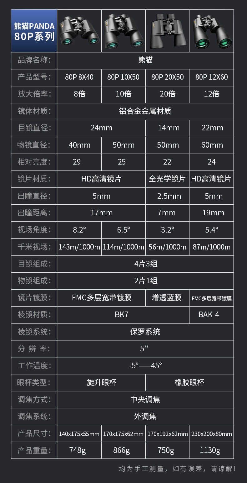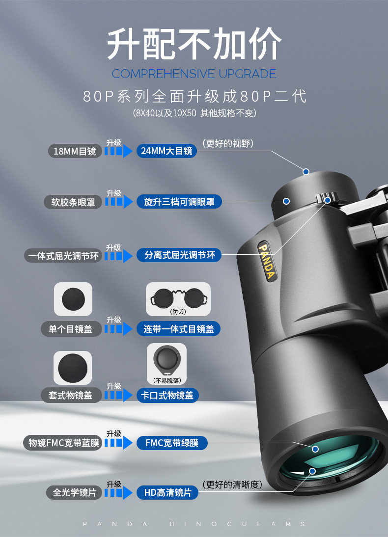 Panda PANDA binoculares de alta potencia, alta definición, grado profesional, visión nocturna con poca luz, cámara para teléfono móvil, prácticos binoculares