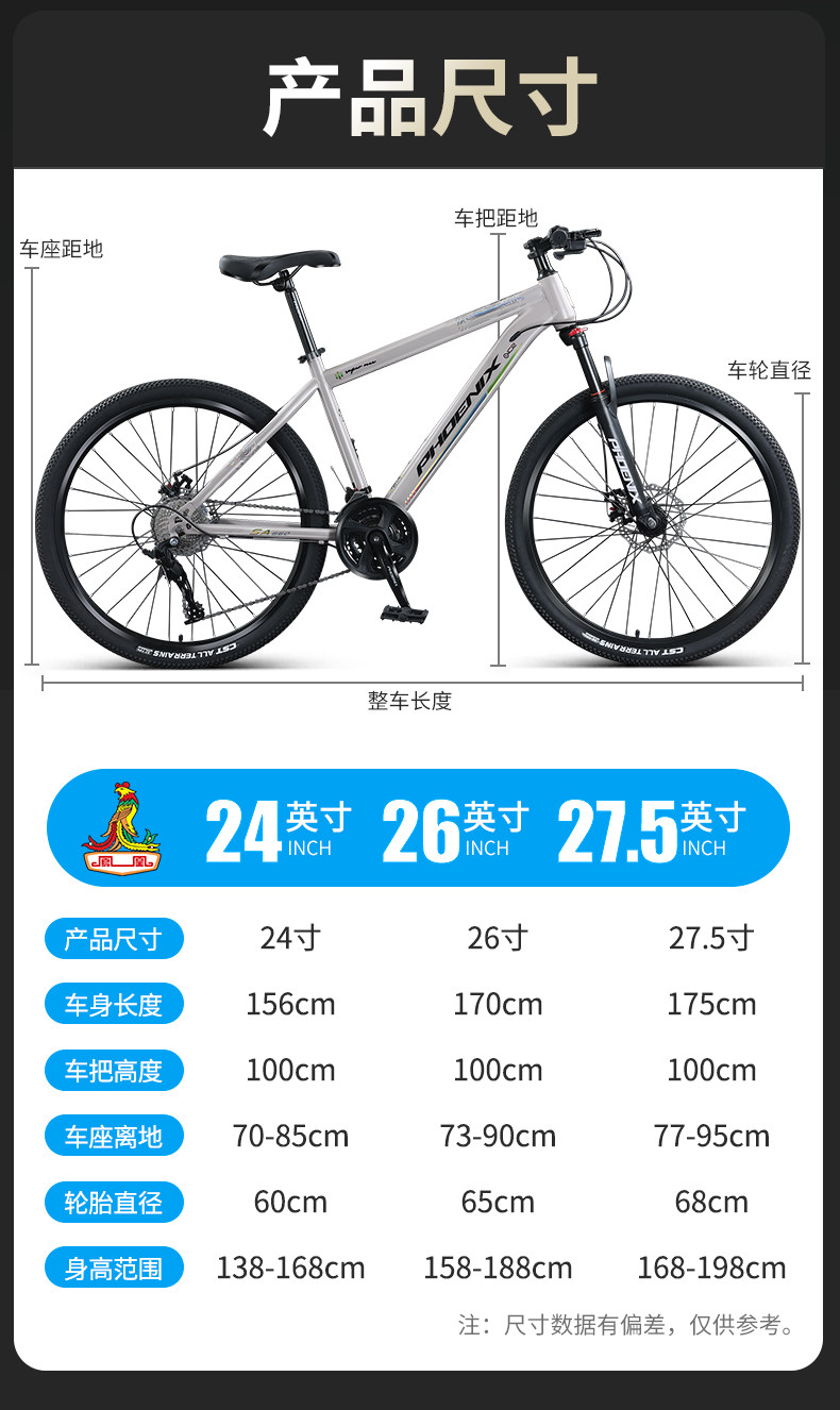 凤凰牌自行车成人男新款变速山地车12岁到18岁青少年单车官方骑行