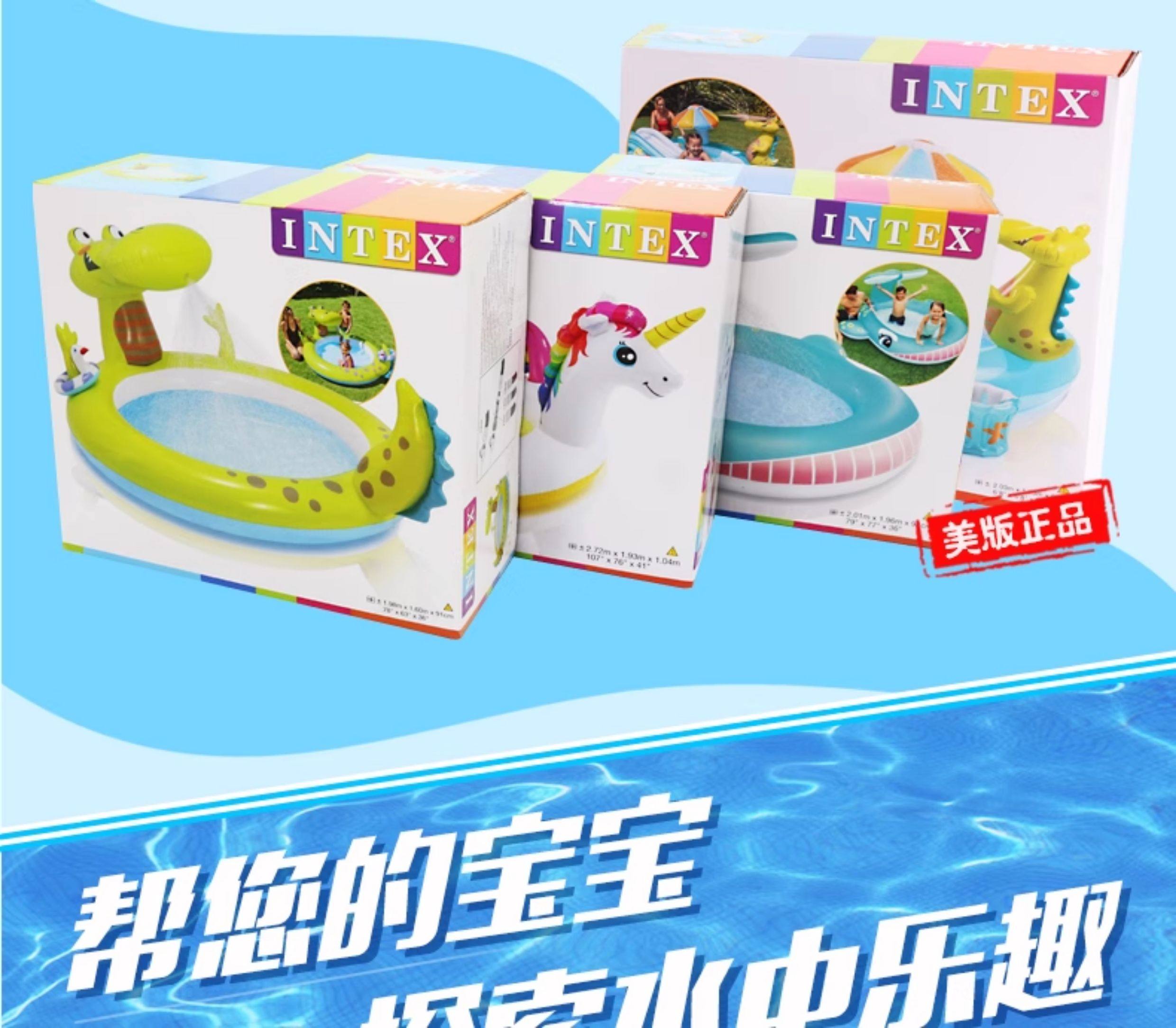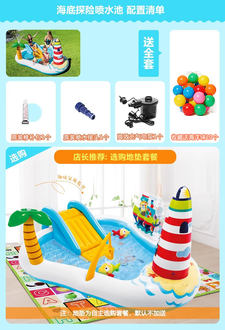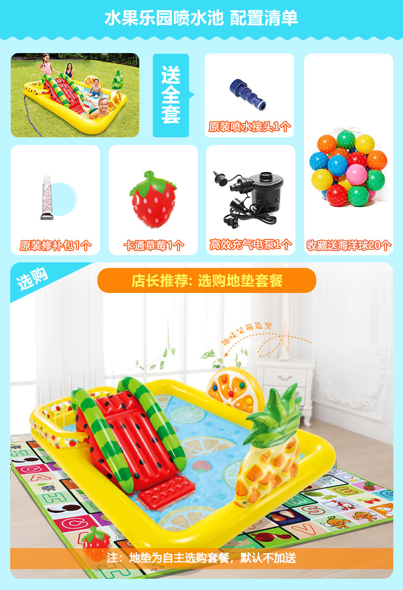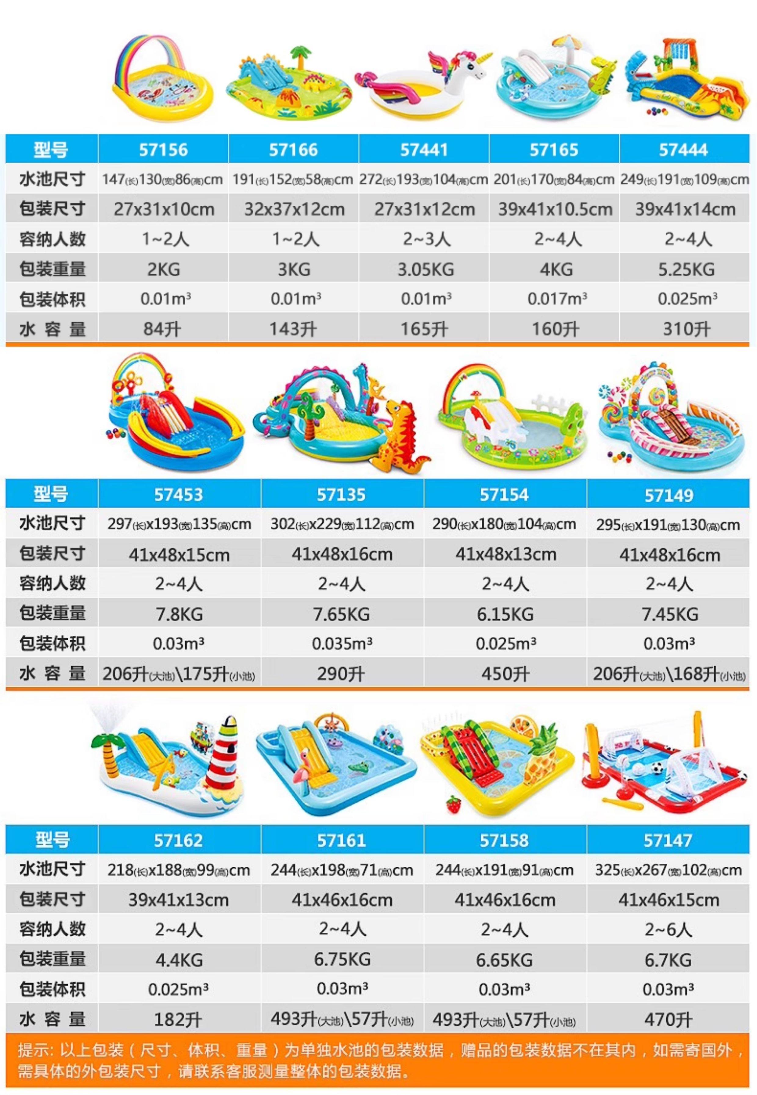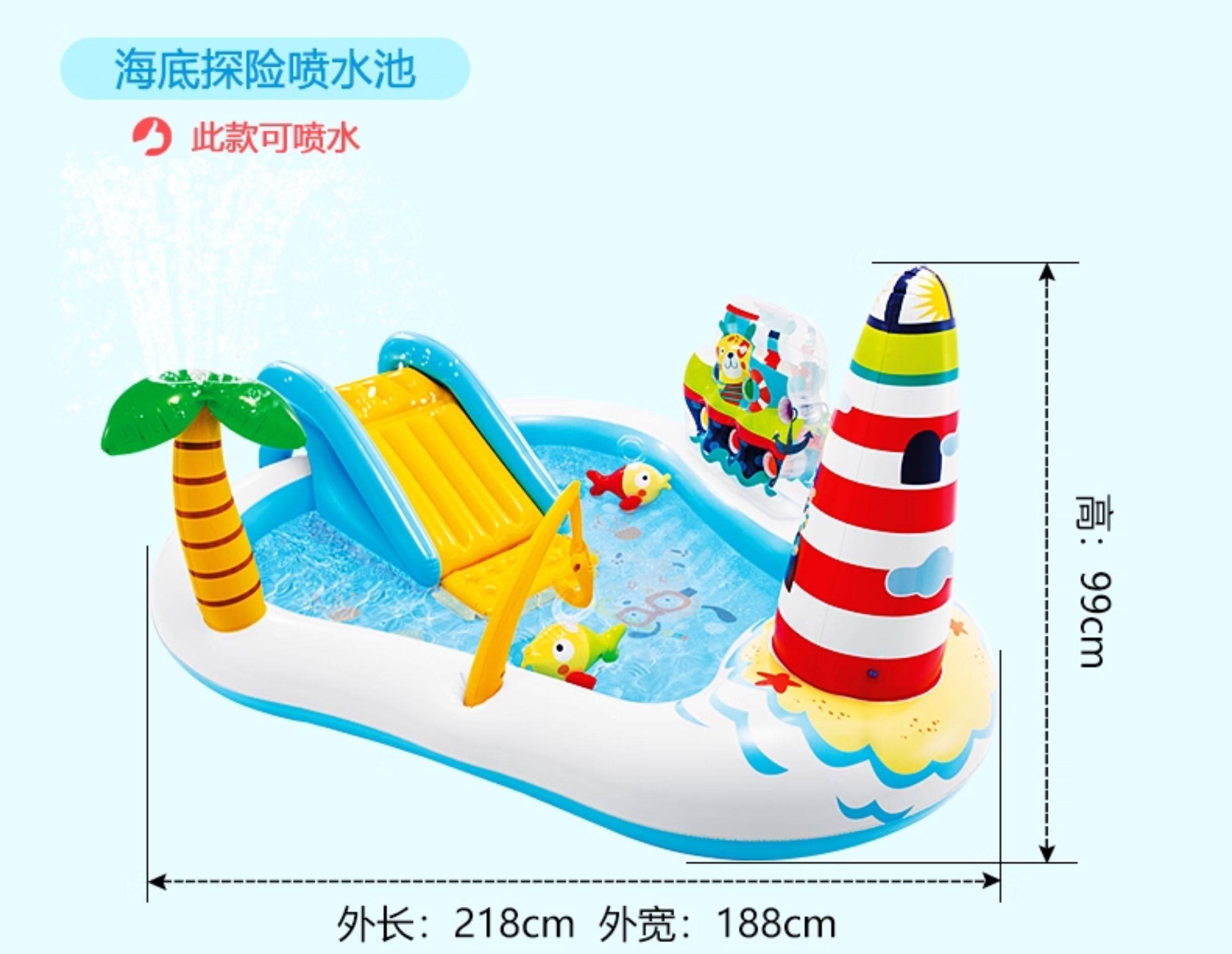 INTEX儿童充气游泳池家庭大型海洋球沙池家用宝宝喷水戏水滑梯池