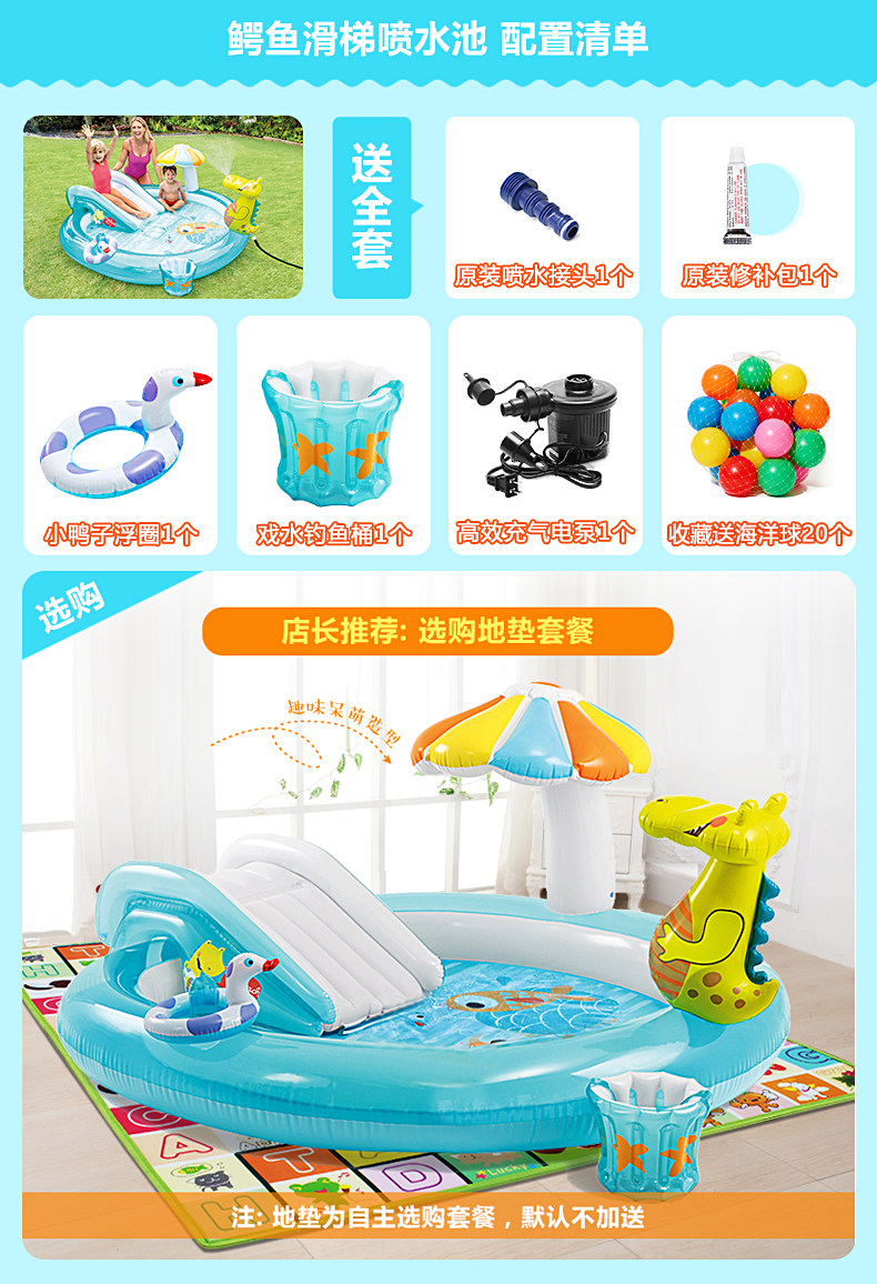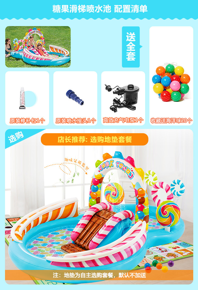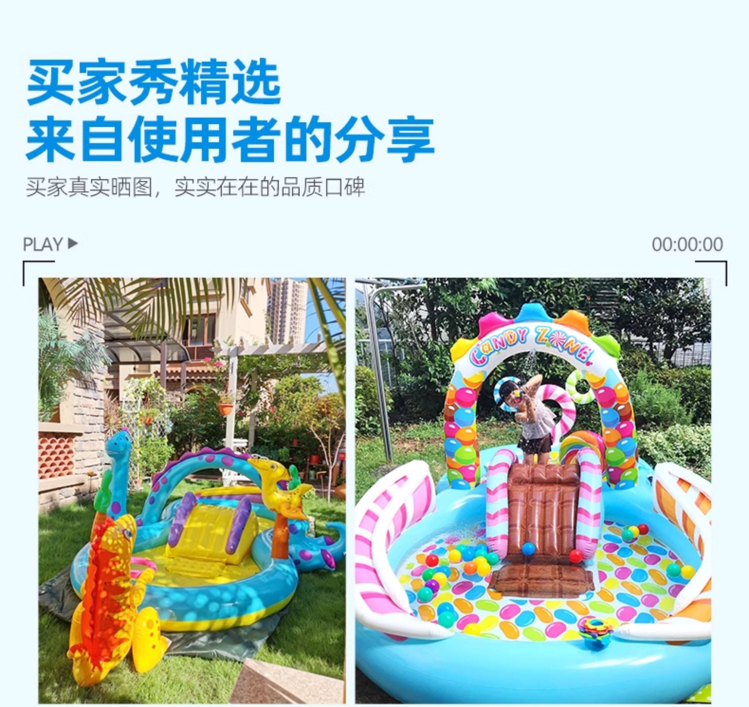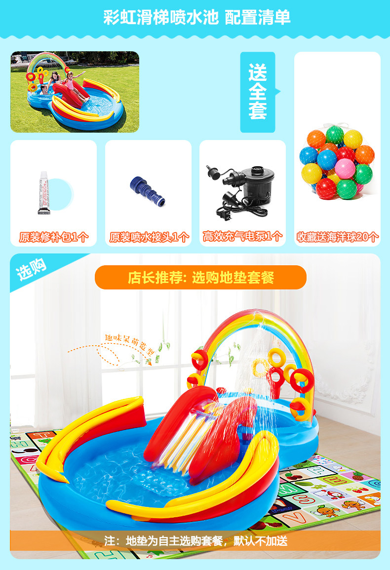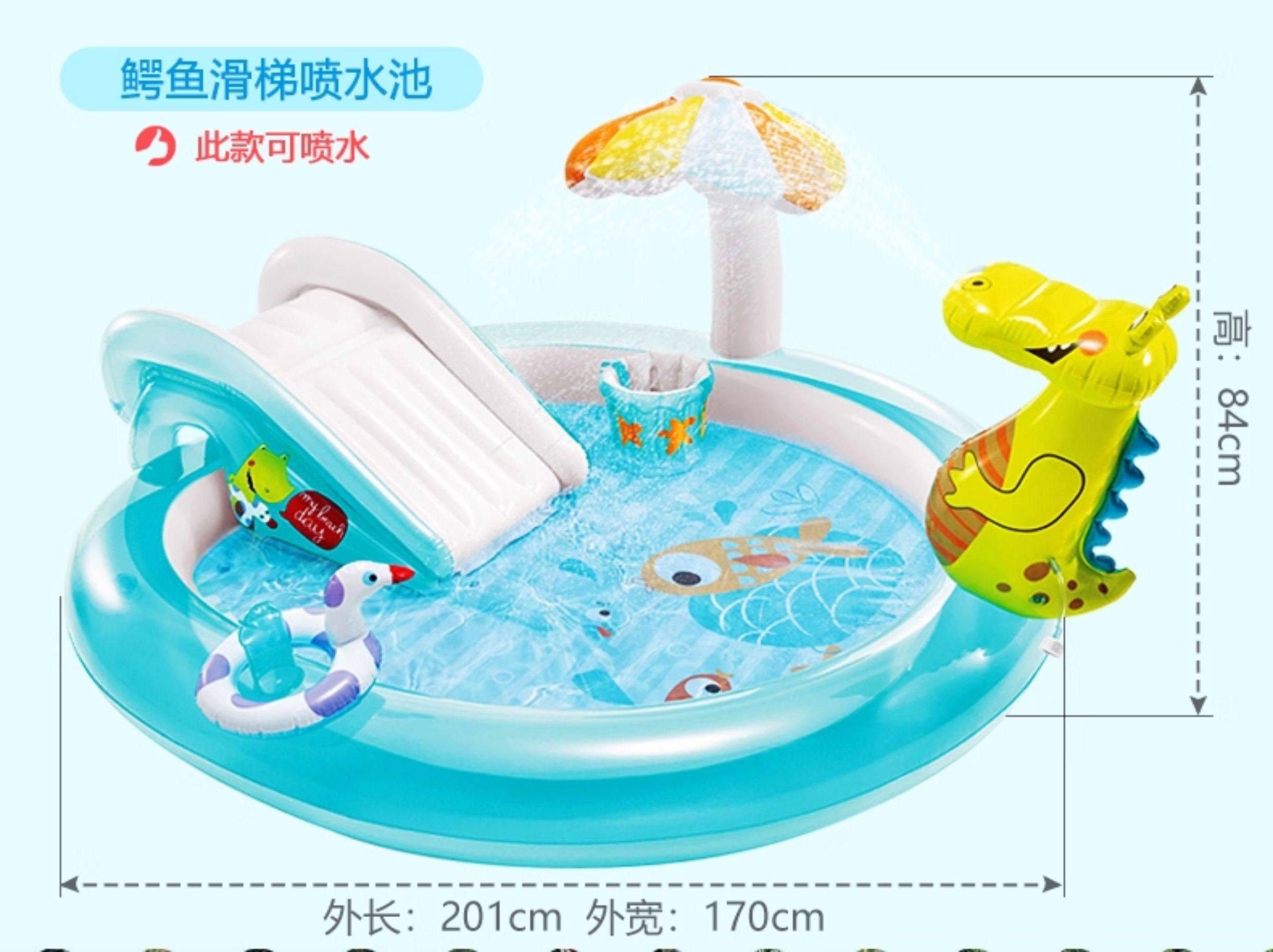 INTEX儿童充气游泳池家庭大型海洋球沙池家用宝宝喷水戏水滑梯池