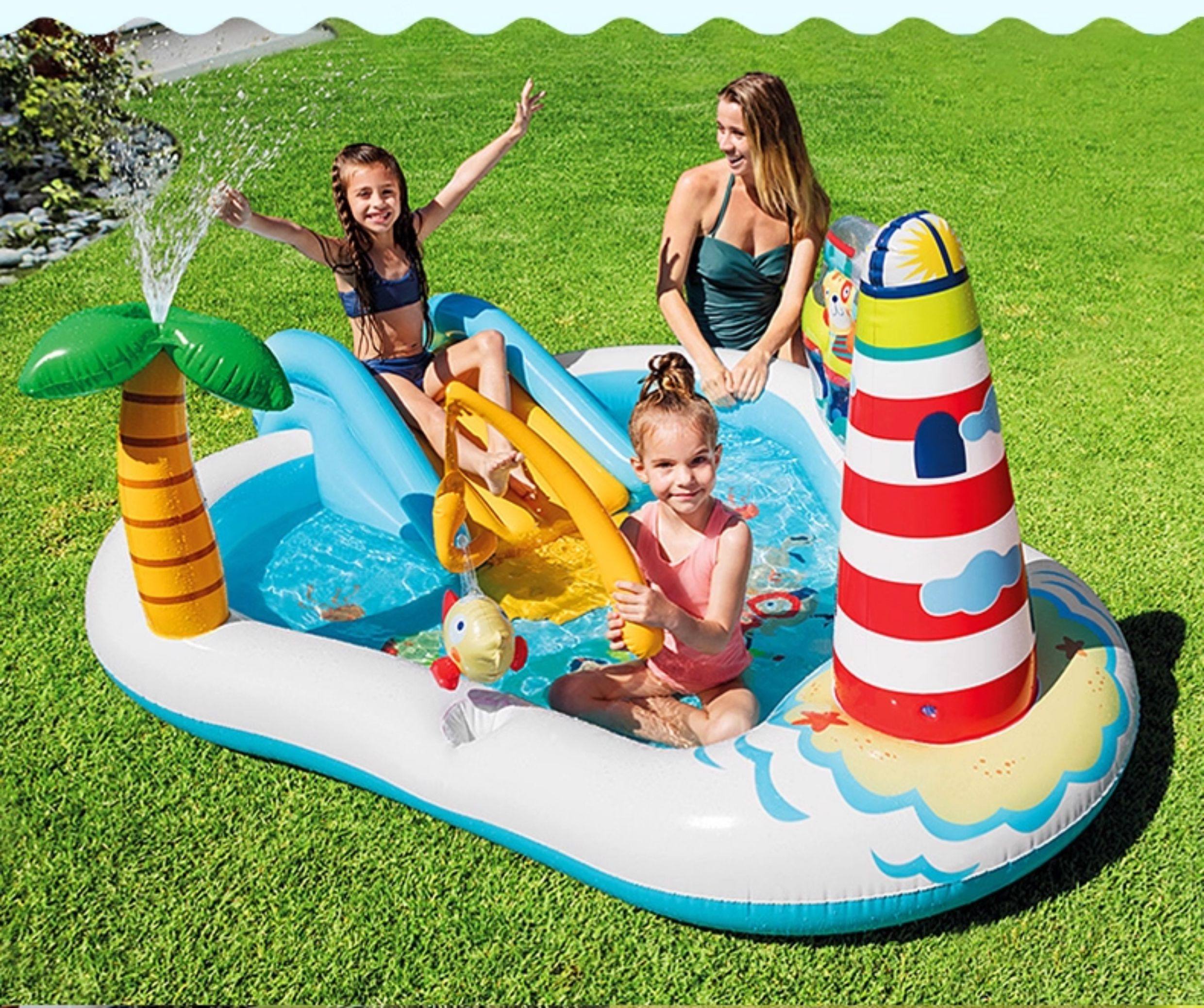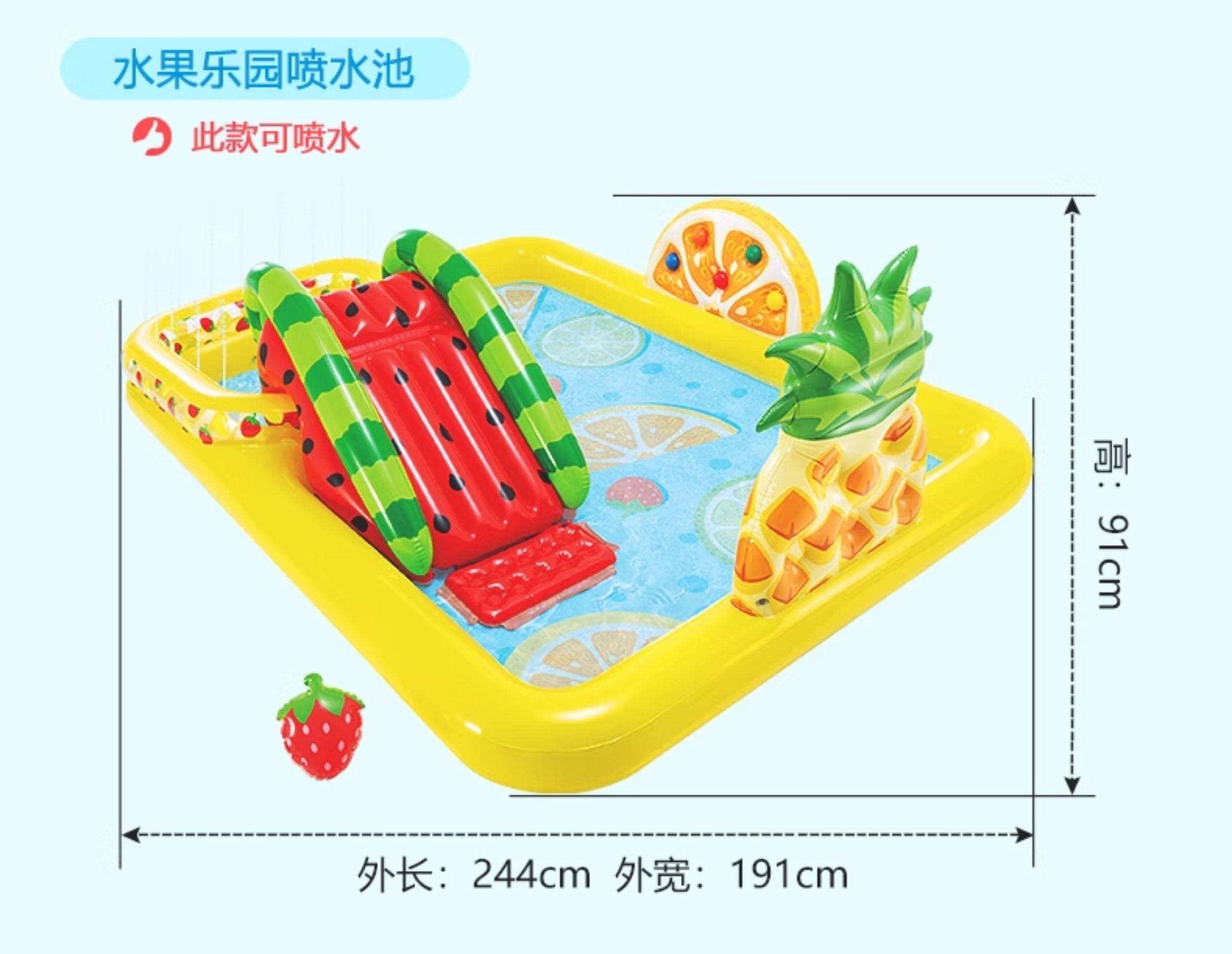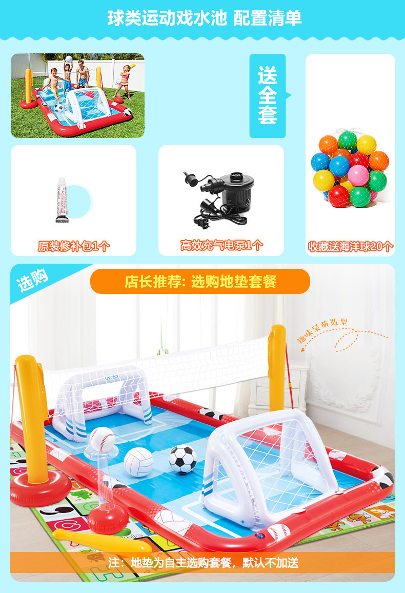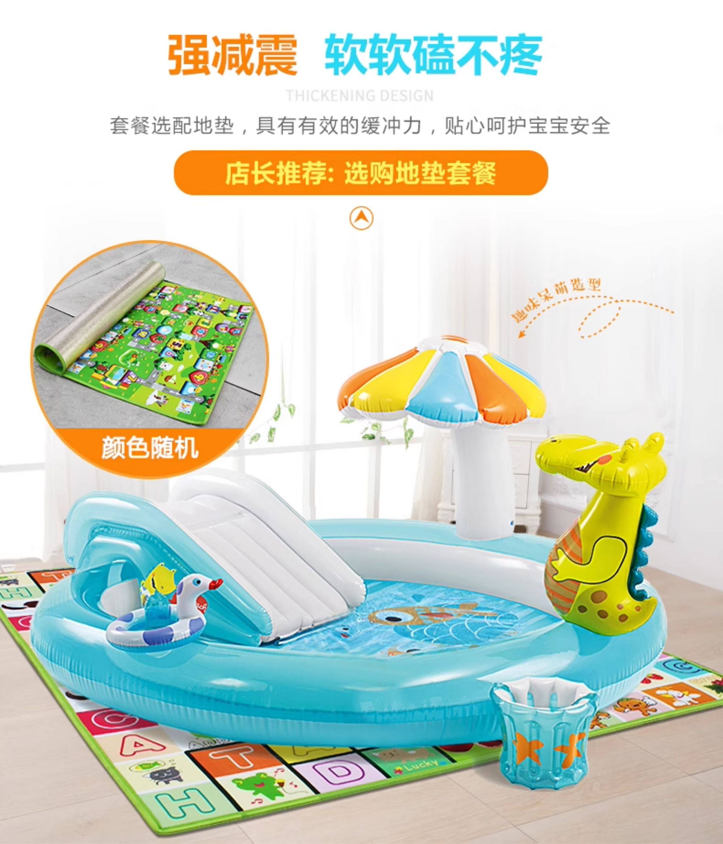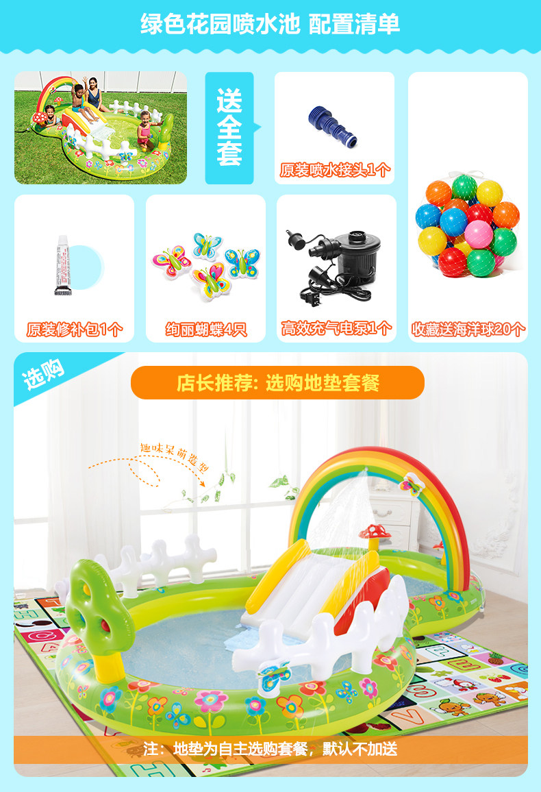 INTEX儿童充气游泳池家庭大型海洋球沙池家用宝宝喷水戏水滑梯池