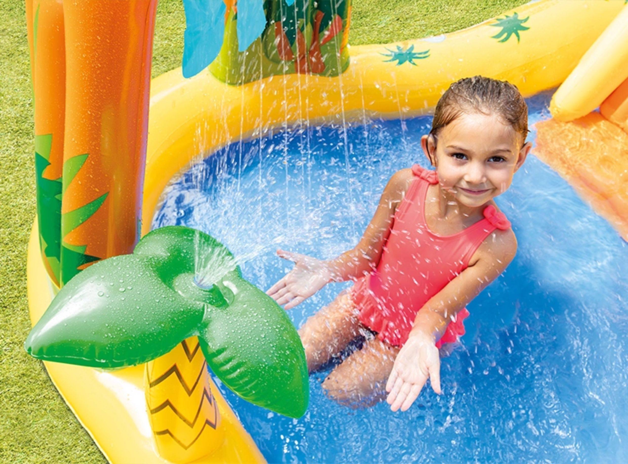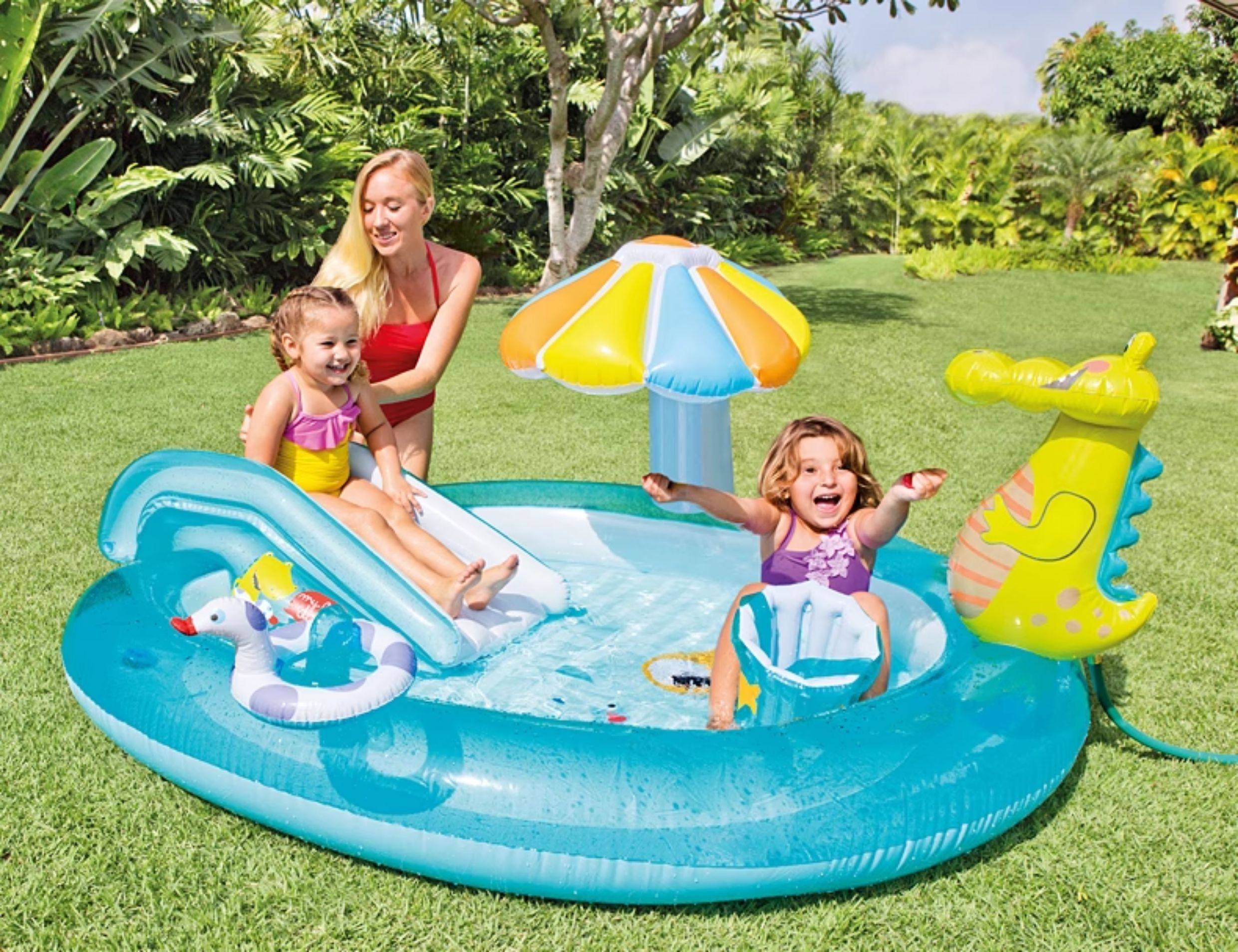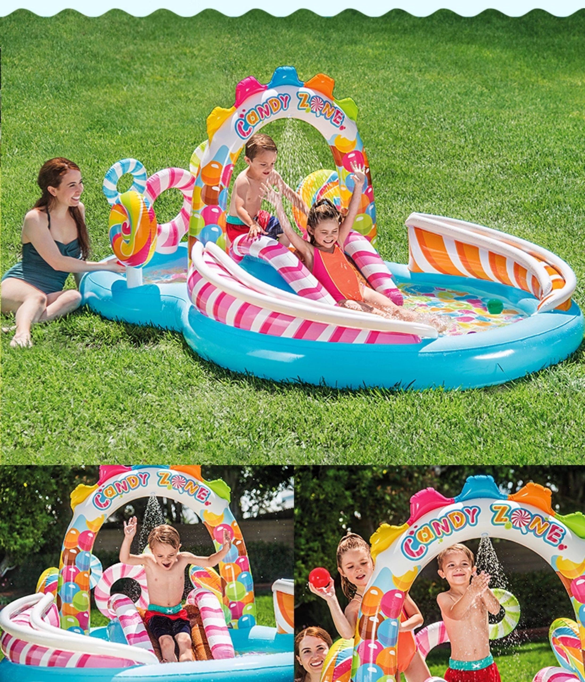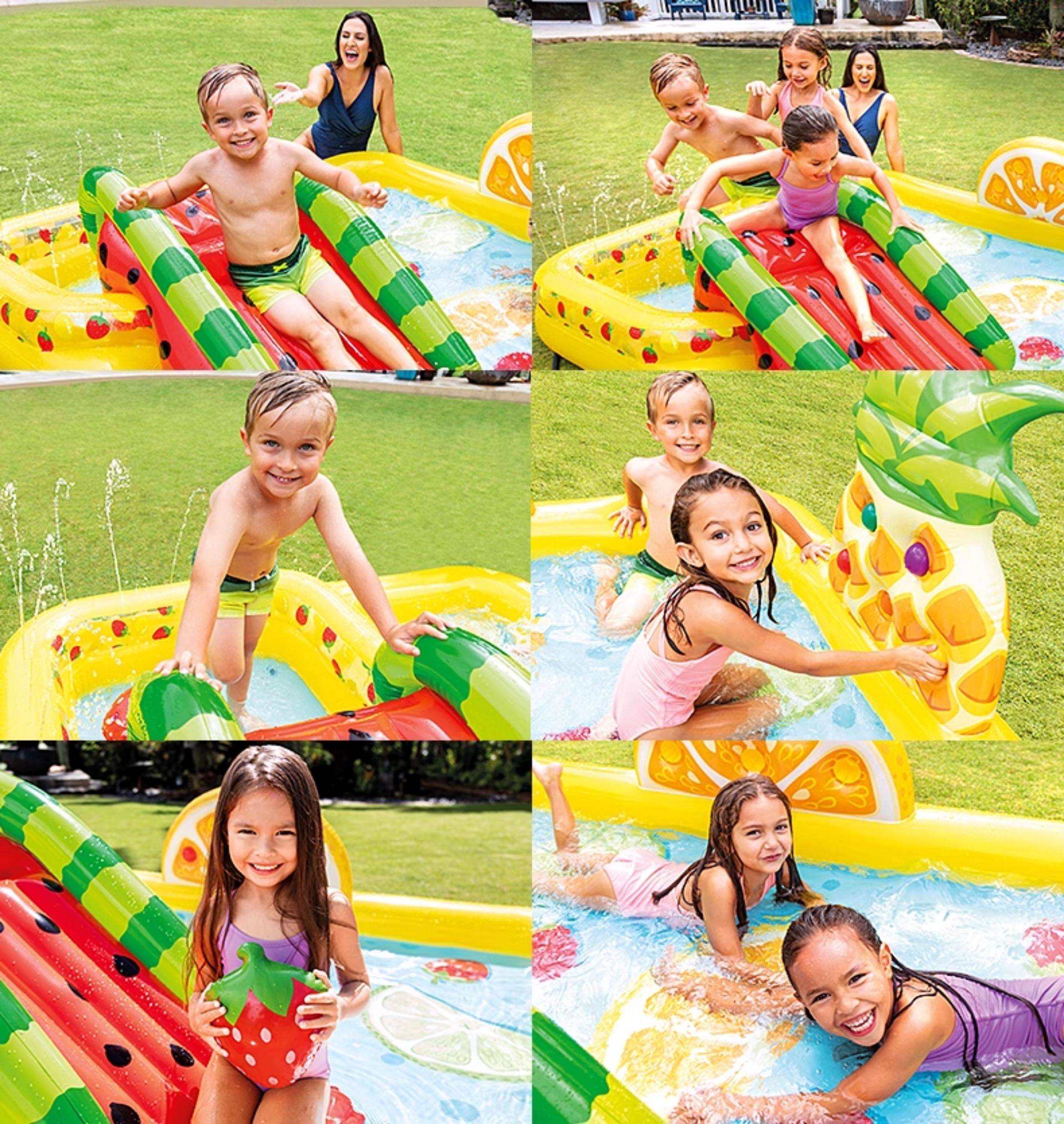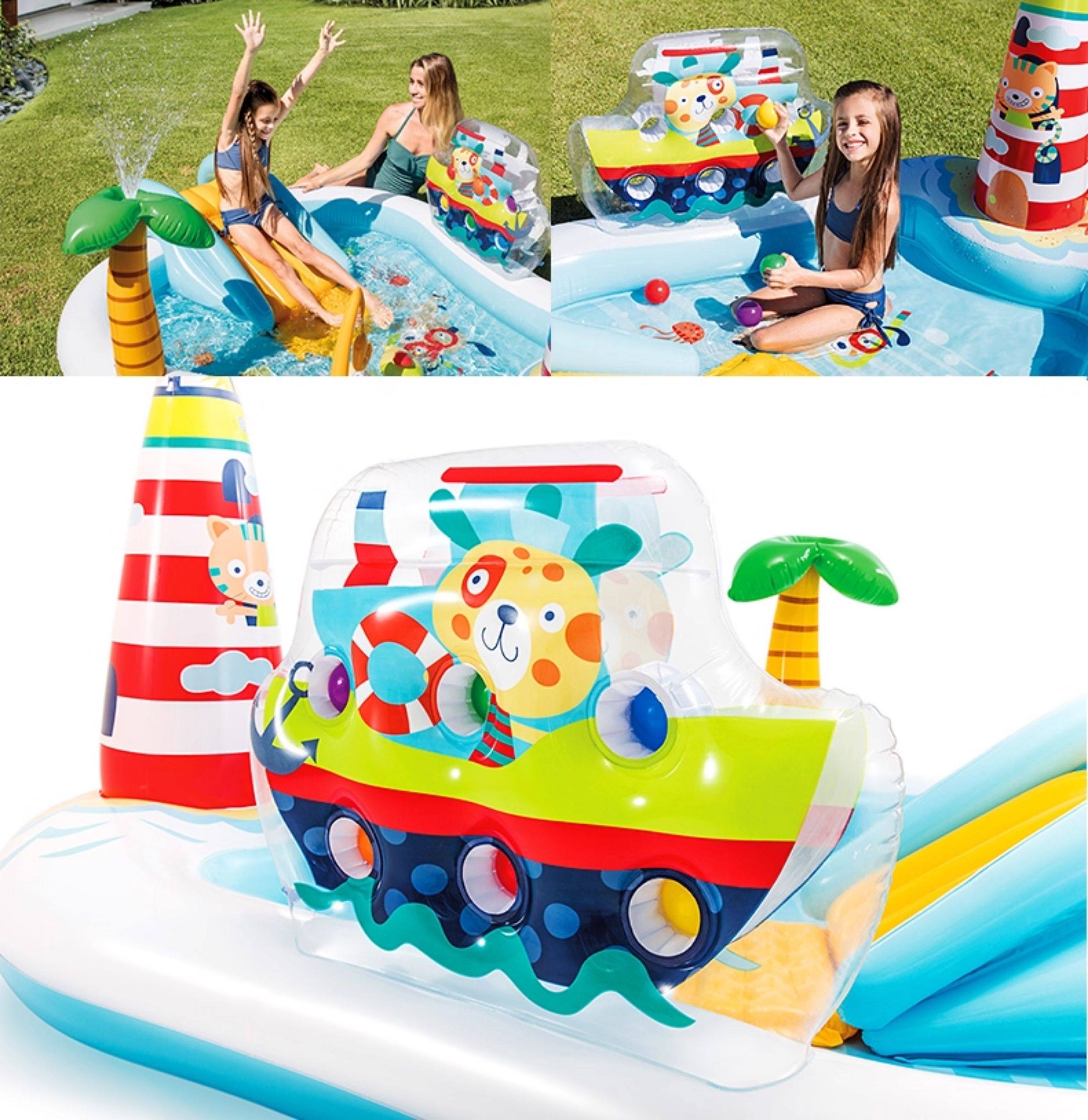 INTEX儿童充气游泳池家庭大型海洋球沙池家用宝宝喷水戏水滑梯池