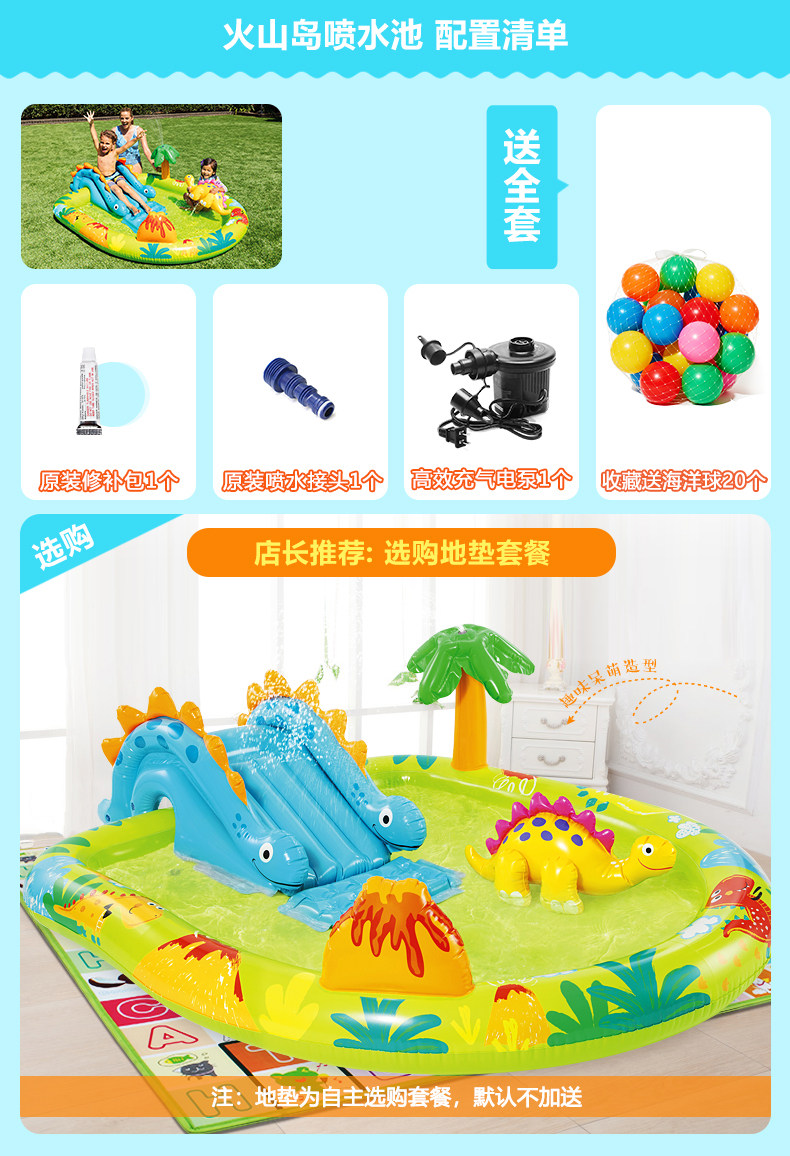 颜色分类 火山岛喷水池-191x152cm +(4重礼),火山岛喷水池-191x152cm +(4重礼)+卡通地垫,鳄鱼滑梯喷水池-201x170cm +(6重礼),鳄鱼滑梯喷水池-201x170cm +(6重礼)+卡通地垫,青龙火山喷水池-249x191cm +(4重礼),青龙火山喷水池-249x191cm +(4重礼)+卡通地垫,沙漠恐龙喷水池-201x157cm +(4重礼),沙漠恐龙喷水池-201x157cm +(4重礼)+卡通地垫,海底探险喷水池-218x188cm +(4重礼),海底探险喷水池-218x188cm +(4重礼)+卡通地垫,绿色花园喷水池-290x180cm +(4重礼),绿色花园喷水池-290x180cm +(4重礼)+卡通地垫,糖果工厂喷水池-295x191cm +(4重礼),糖果工厂喷水池-295x191cm +(4重礼)+卡通地垫,恐龙八字喷水池-302x229cm +(4重礼),恐龙八字喷水池-302x229cm +(4重礼)+卡通地垫,动物乐园喷水池-244x198cm +(4重礼),动物乐园喷水池-244x198cm +(4重礼)+卡通地垫,球类玩耍池-325x267cm +(3重礼),球类玩耍池-325x267cm +(3重礼)+2张卡通地垫