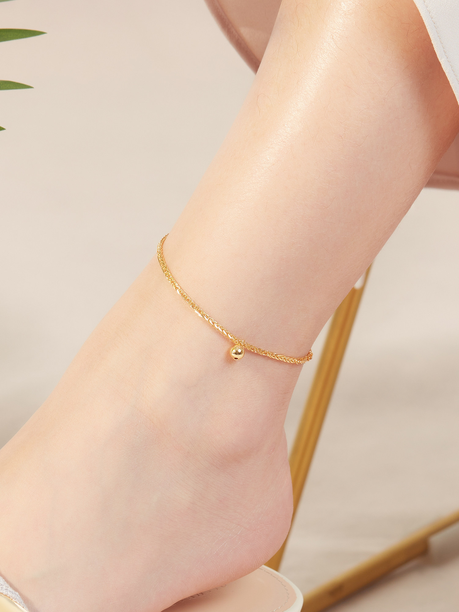 六福珠宝黄金金珠脚链小圆珠足金脚链女款送礼计价F63TBGB0027