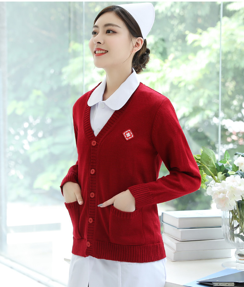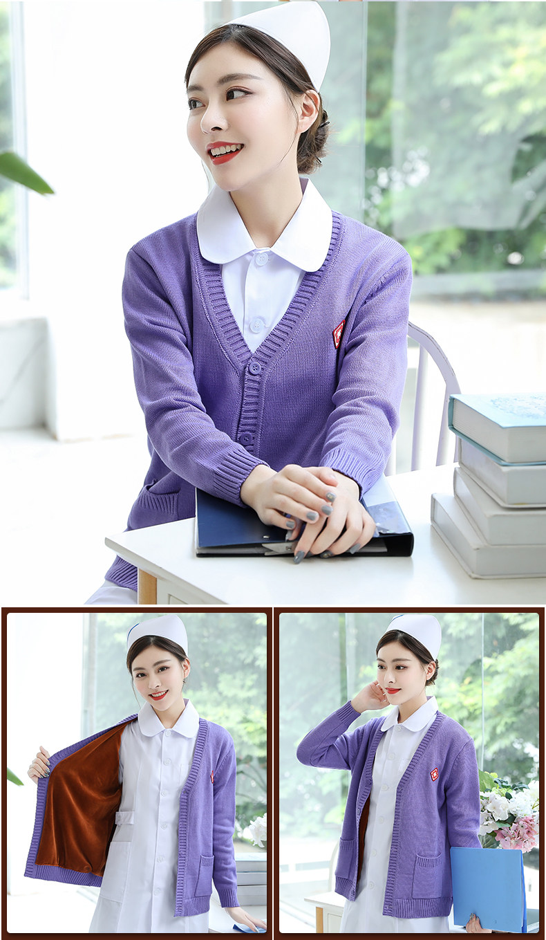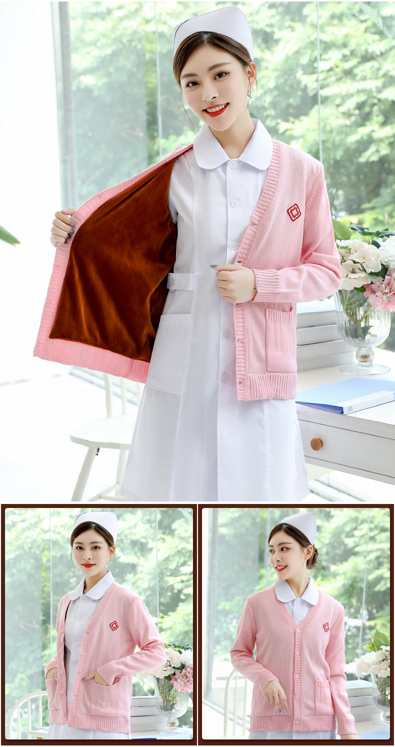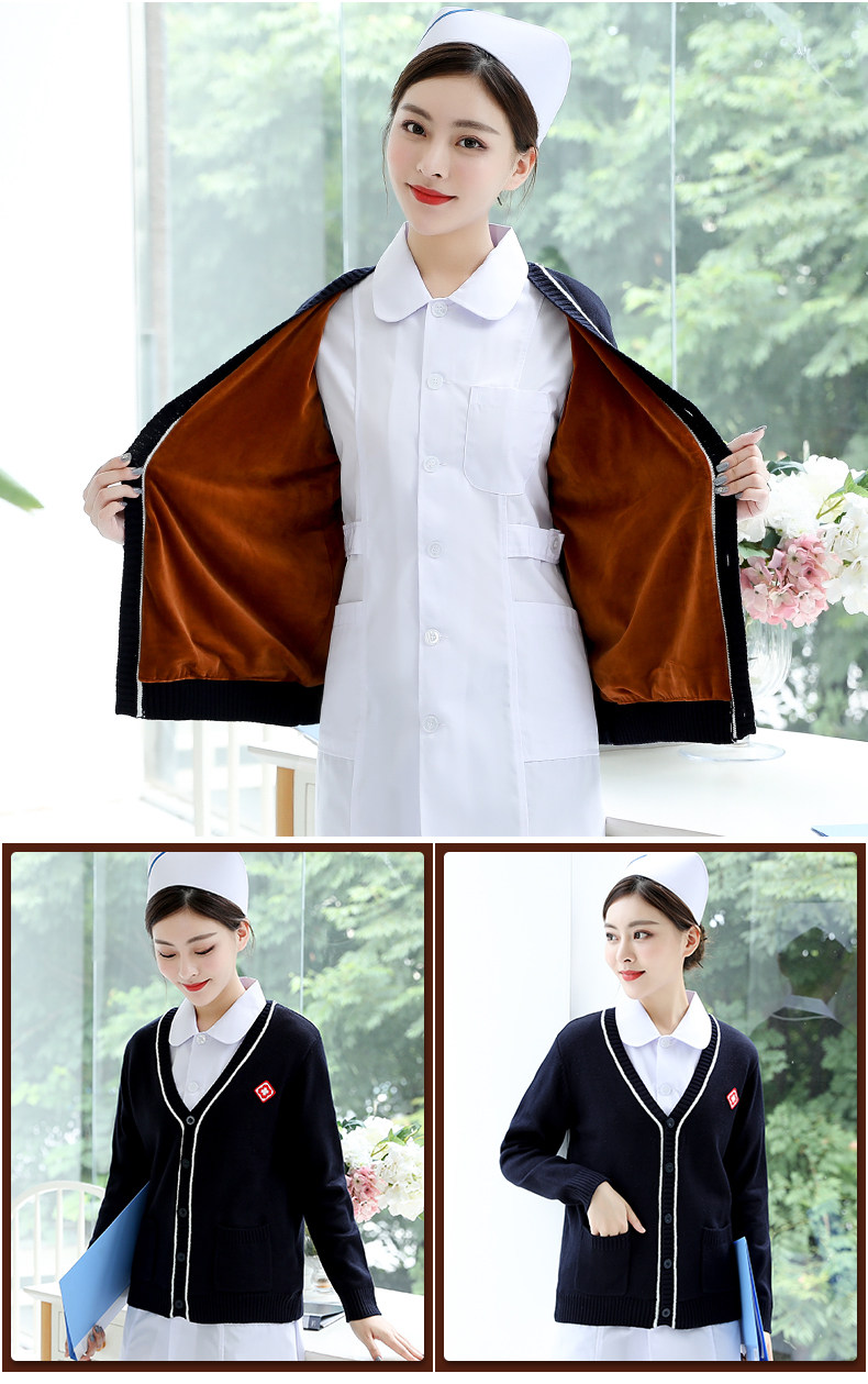 Krankenschwesterpullover Damenpullover Krankenschwesteruniform Strickjacke für medizinisches Personal Samtverdickter Mantel Oberbekleidung Marineblau Krankenhaus