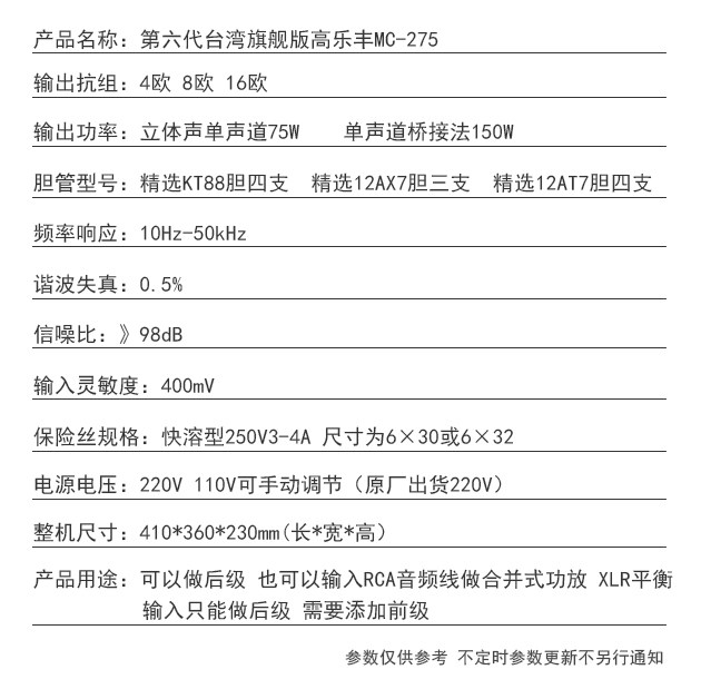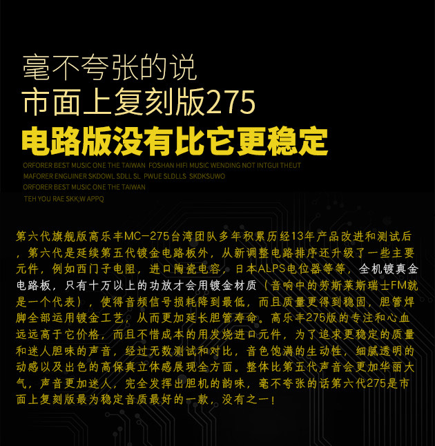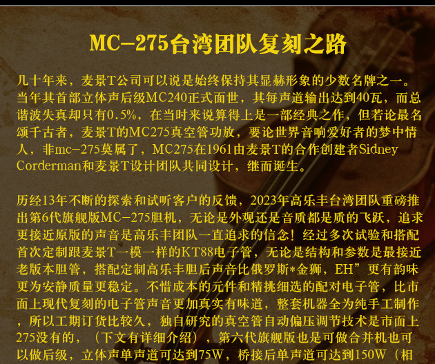 胆机功放一代经典hifi高保真胆后级功放机高乐丰复刻MC275麦景*图