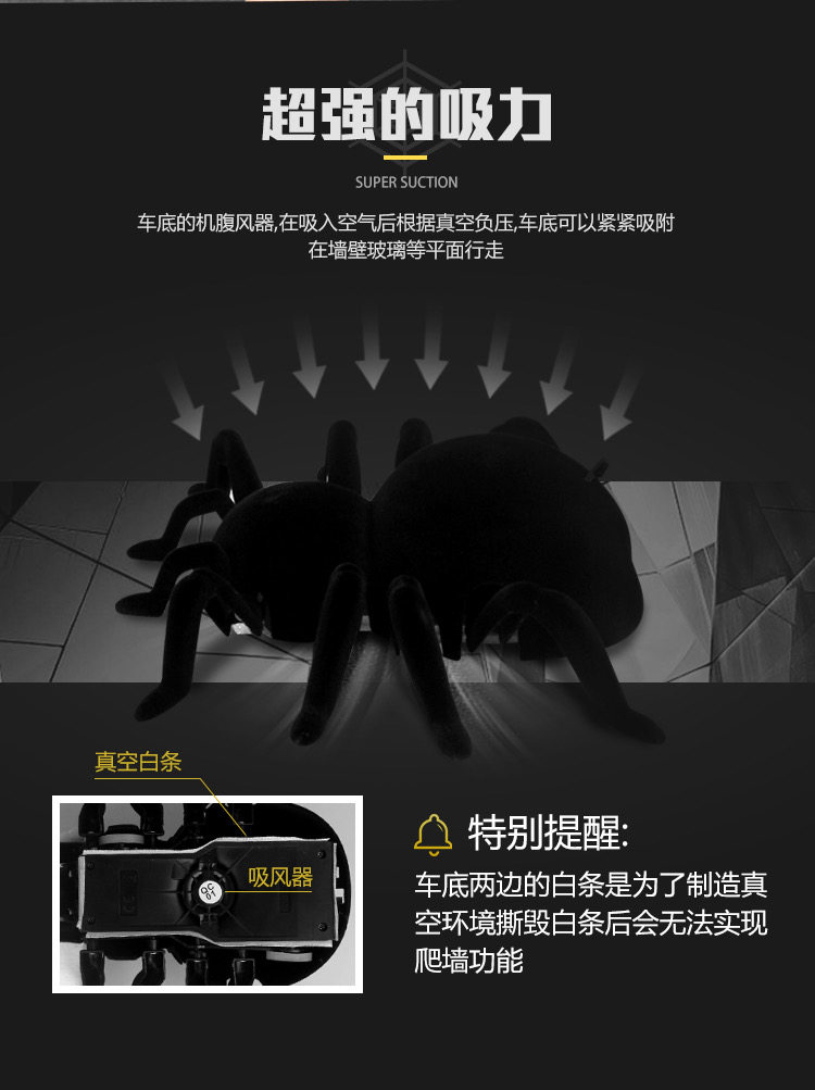 遥控无线充电会爬墙天花板行走仿真蜘蛛整蛊道具吓人恶搞玩具包邮