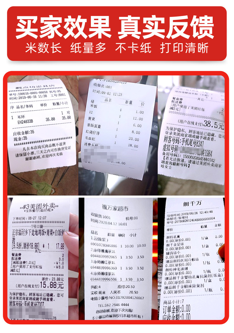 Бумага для печати, чековая бумага 57x50, термобумага для кейтеринга Meituan 58 мм, чековая бумага для кухонных систем заказа 80x80*50, чековая бумага для отелей 80*60, бумага Kueryun 57x30, бумага для кассы супермаркета, бумага Ele.me 40x30