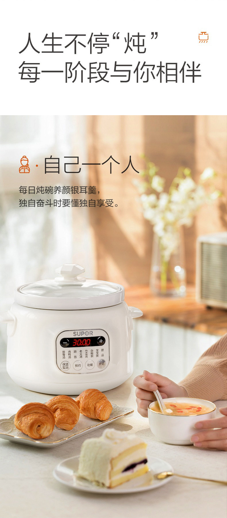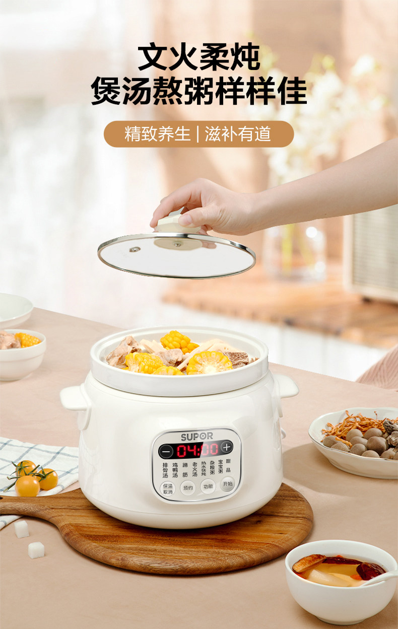 苏泊尔电炖锅陶瓷煲汤锅家用2025新款紫砂炖汤熬粥3L自动煮粥专用