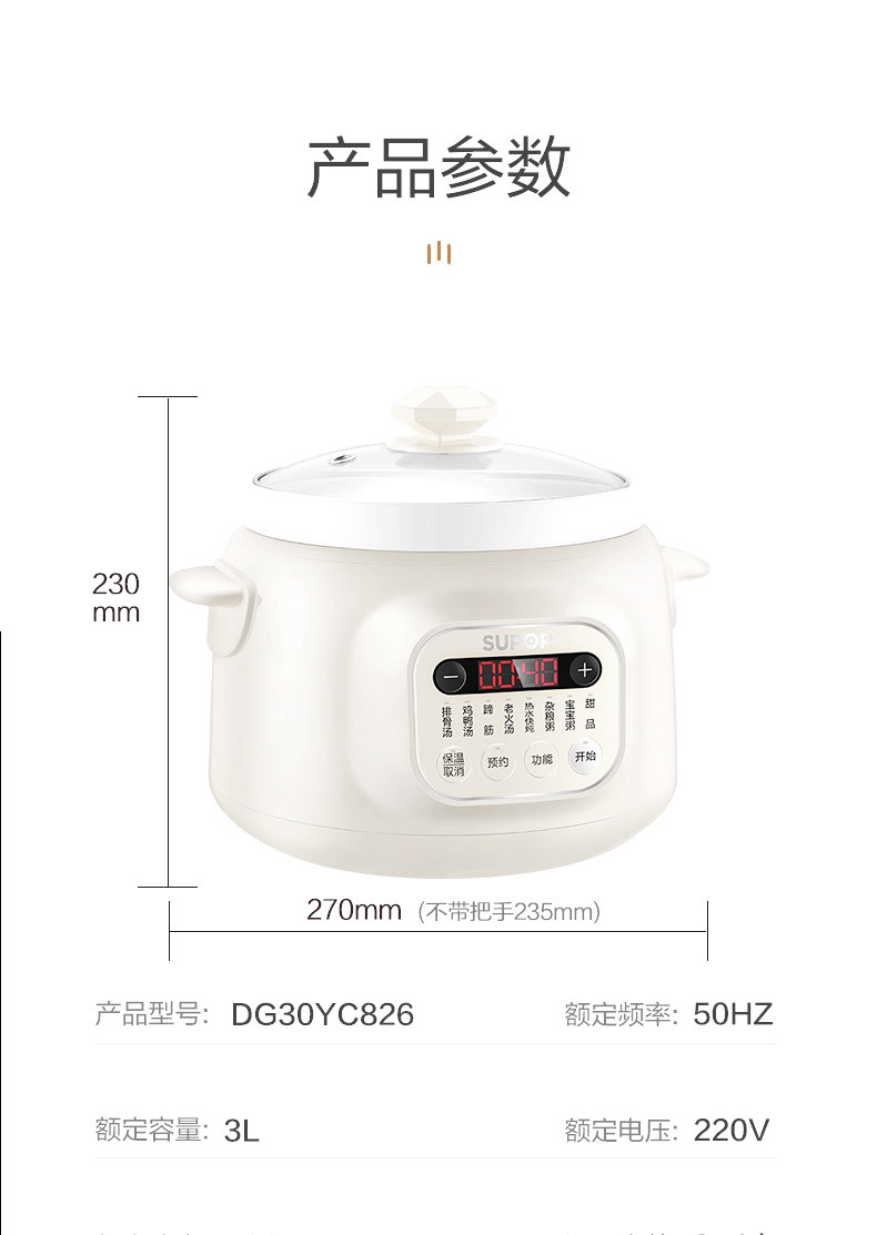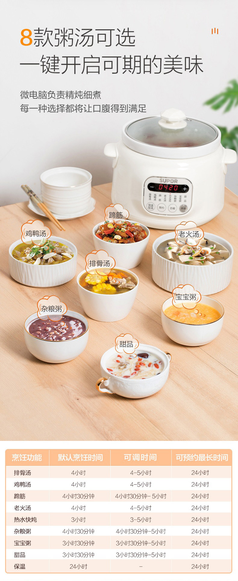 功能 酸奶,米饭,煲汤,蒸,炖,焖,煮粥