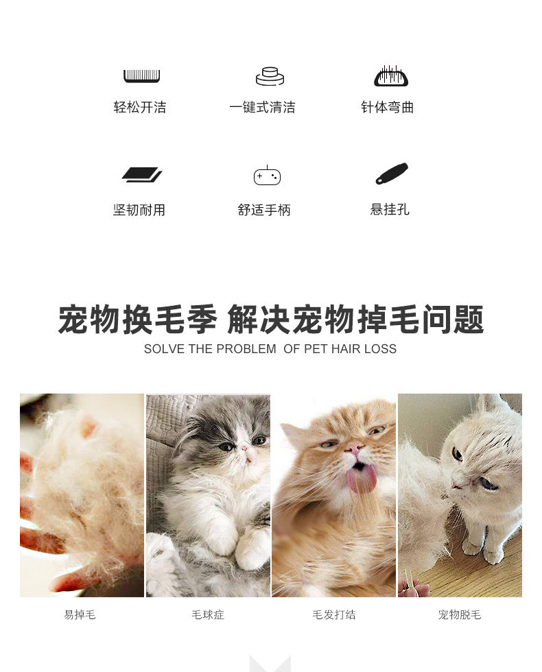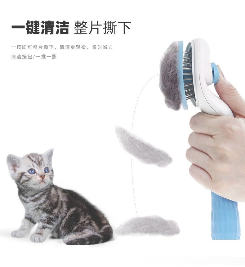 Hunde- und Katzenkämmkamm zum Entfernen schwebender Haare, schmerzlos und verletzt die Haut nicht, Ein-Klick-Haarentfernungs-Hundenadelkamm, Haustierkämmwerkzeug