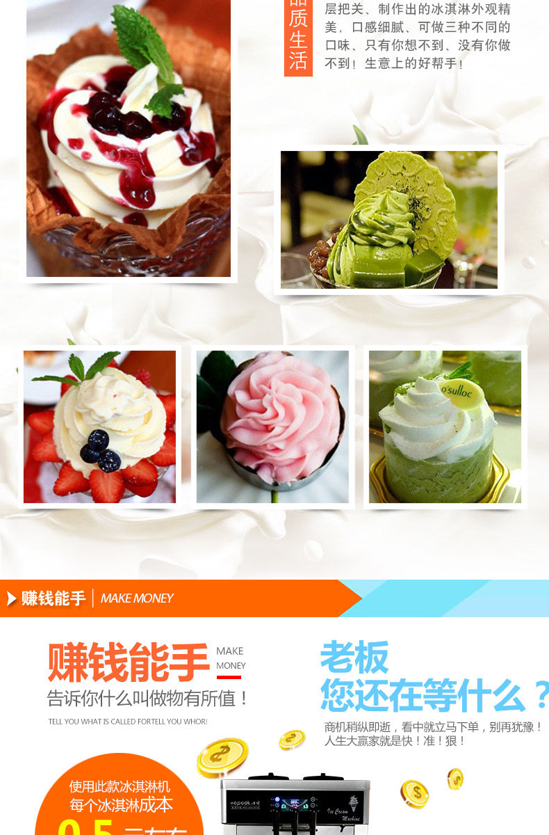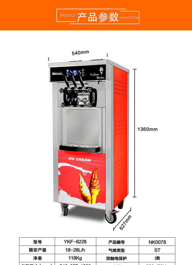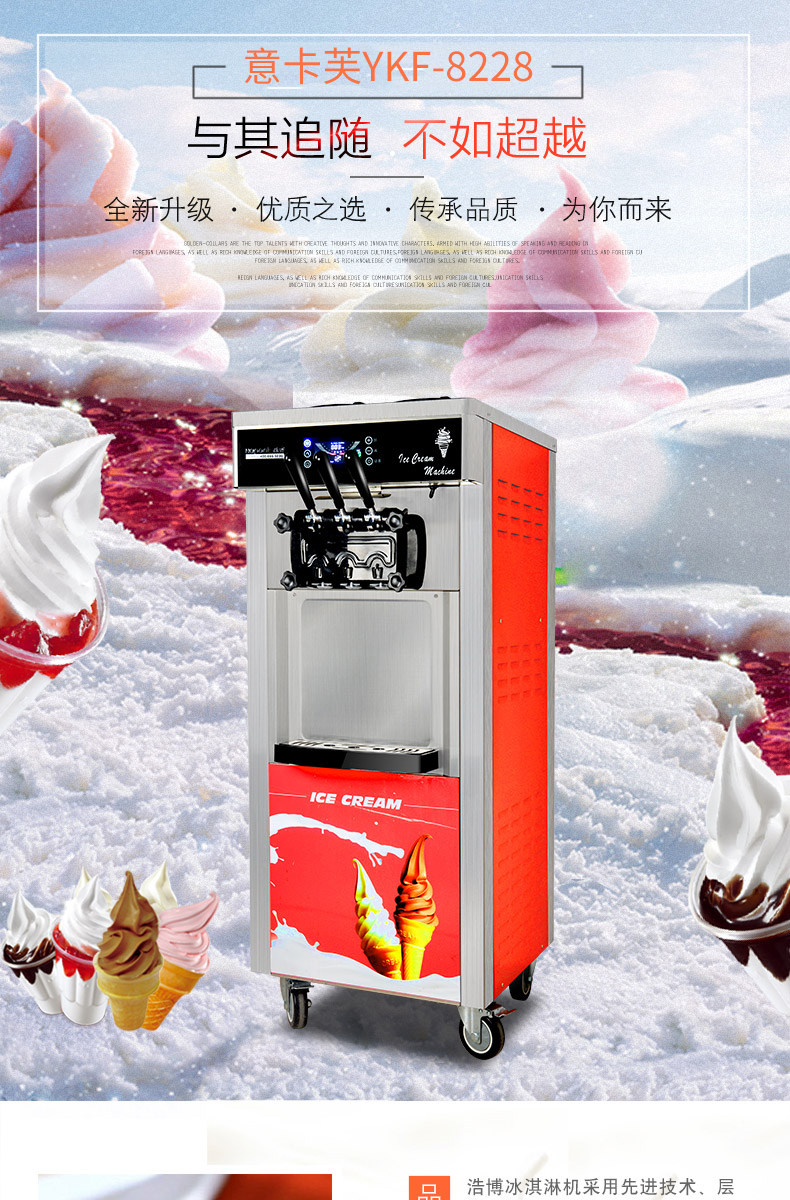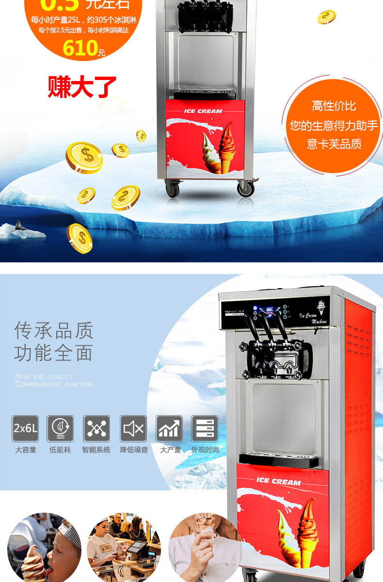 意卡芙冰淇淋机商用雪糕机立式全自动圣代甜筒台式小型软冰激凌机