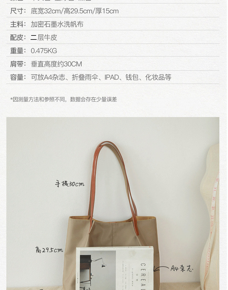 轻便防水尼龙手提包牛津布女包帆布单肩大包简约商务通勤托特布包
