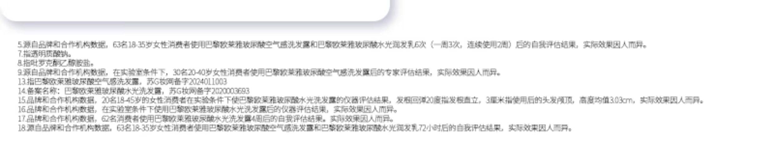 产品名称 巴黎欧莱雅玻尿酸水光洗发露