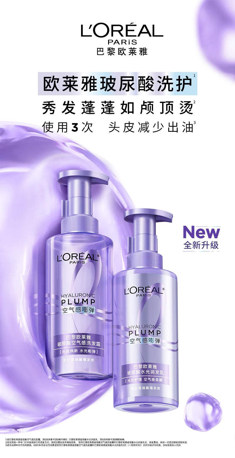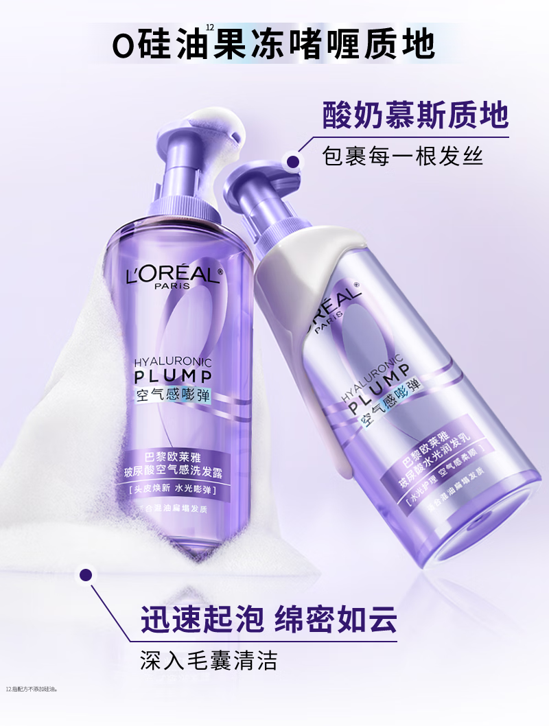 巴黎欧莱雅紫安瓶玻尿酸洗发水控油蓬松洗发露护发素洗护套装正品